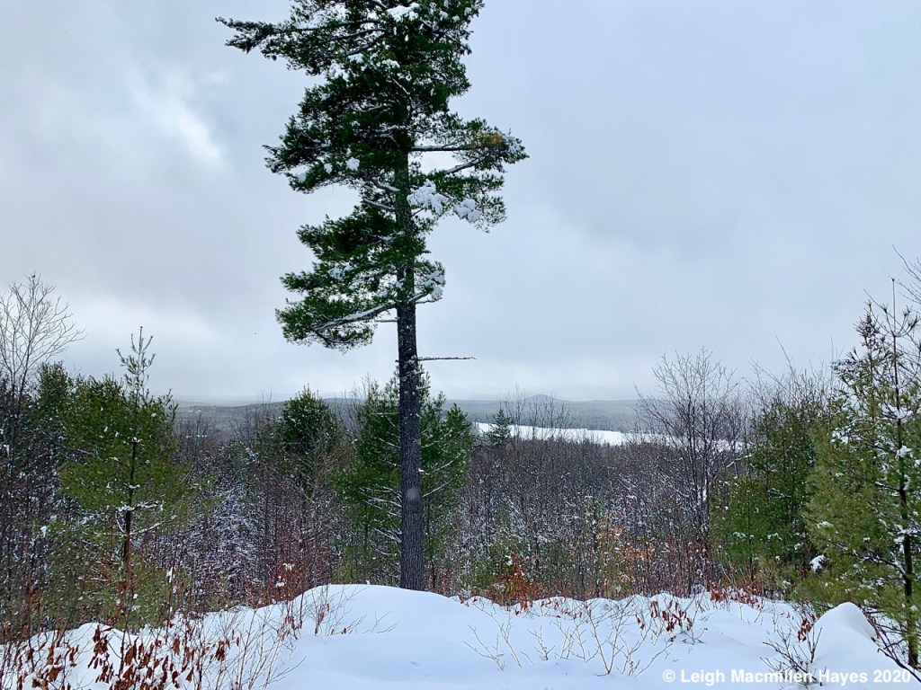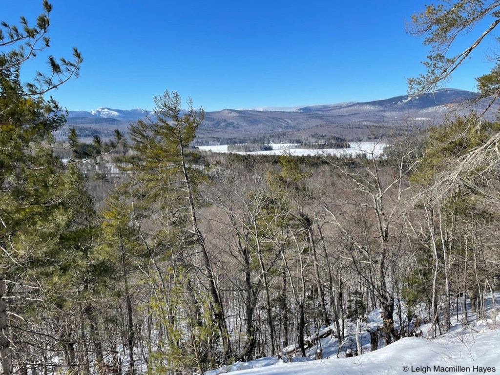 Soon reaching the summit of Whiting Hill, we took in the view of Kezar Lake and the mountains to the west, reminiscing on First Day Hikes in past years that brought us to this summit and noting this would have been the same destination for 2021, albeit via a different route, if COVID-19 hadn’t interrupted the plan.