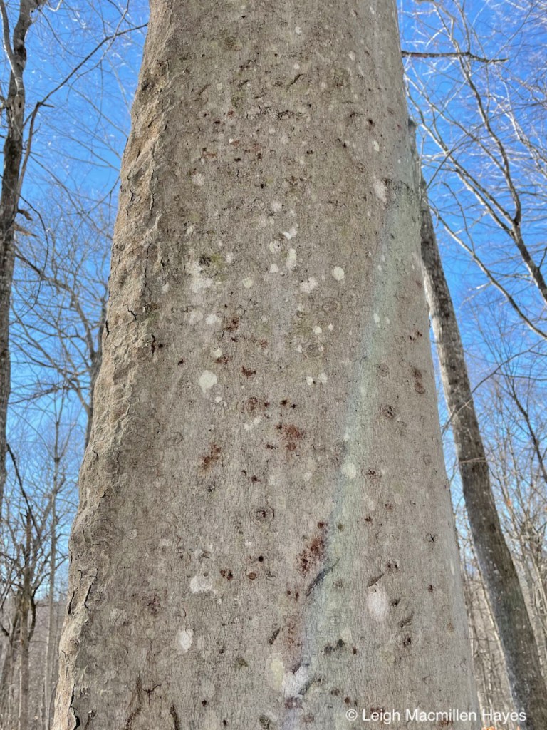Turning from Whiting Loop to the Hemlock Trail, at least one old bear tree begged to be honored and so we did, its claw marks disappearing among the cankers of Beech Scale Disease more and more each year.