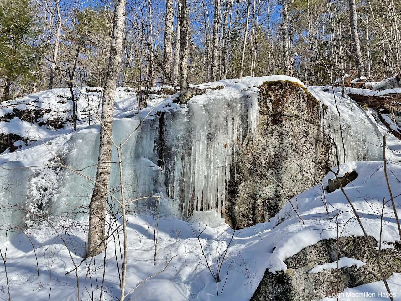 Eventually, we found our way down part of the Rogers Family Trail where ice flows off the ledges next captured our attention.