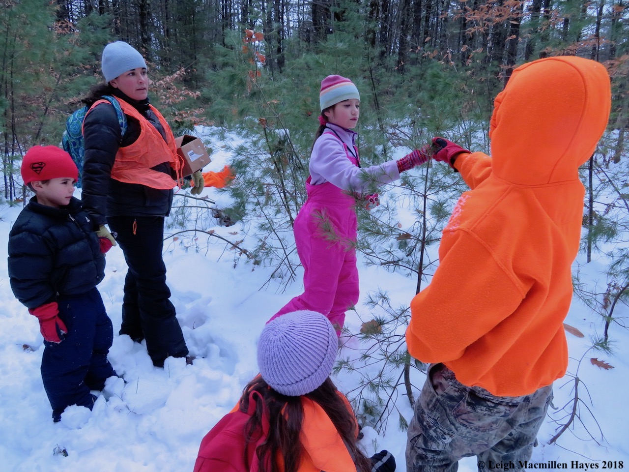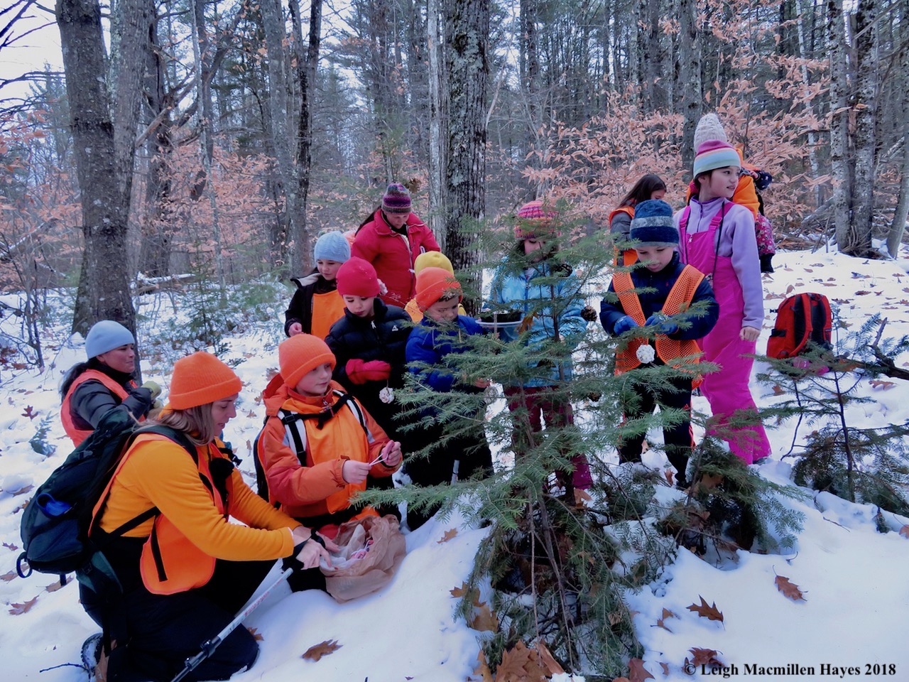 Since it’s deer hunting season in the Maine woods, we decided to host a walk one Sunday in November on a Greater Lovell Land Trust property because hunting is prohibited on this day. And today happened to be that Sunday. But first, this story begins with a few other events. On Friday, I had the honor of participating in a late afternoon program at New Suncook School. Before the young girls in the program, their leaders, and I stepped outside, one of them struggled with a Hannaford bag that was splitting apart because it was full of canned and boxed food. I helped her get the bag into her backpack before she dropped all its contents and the act drove home the need to make sure my guy and I attended the second event.