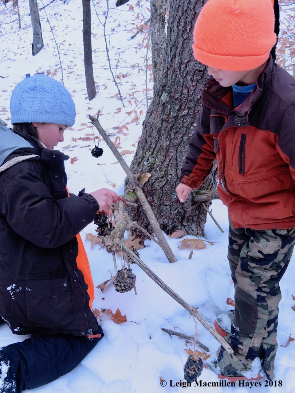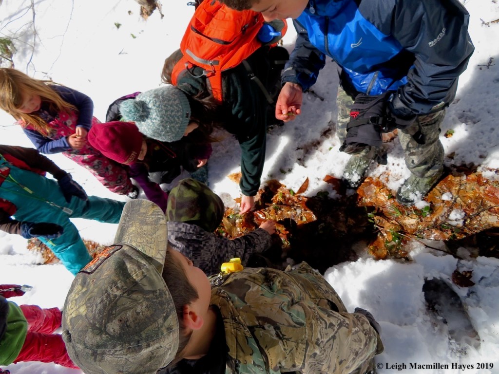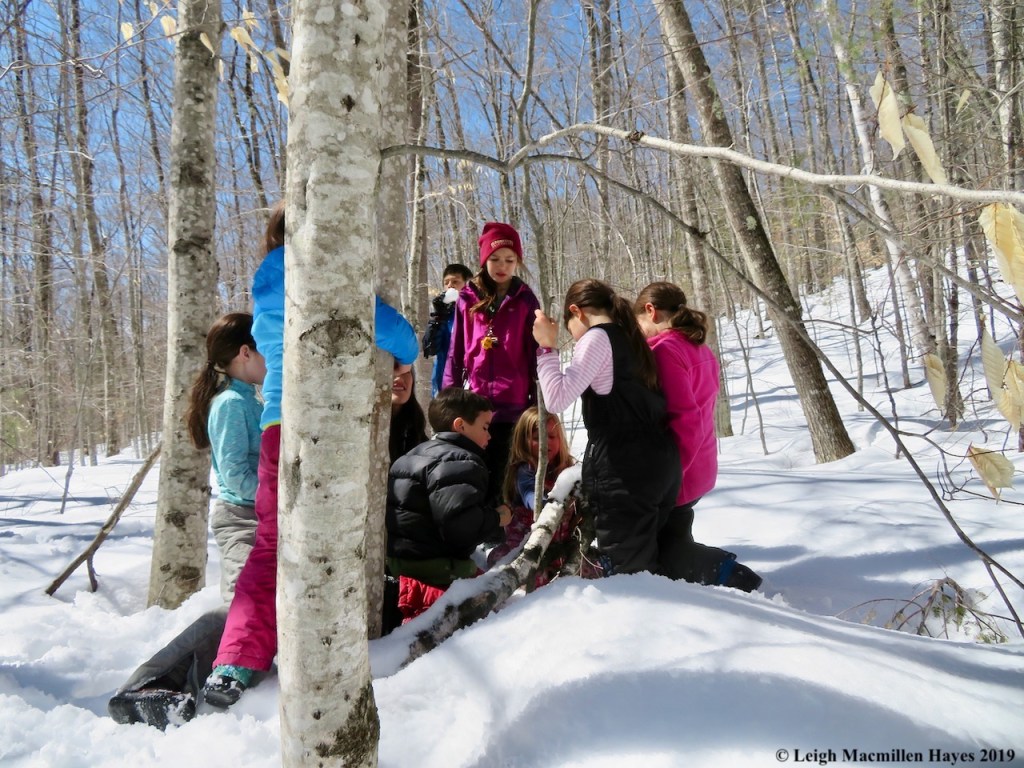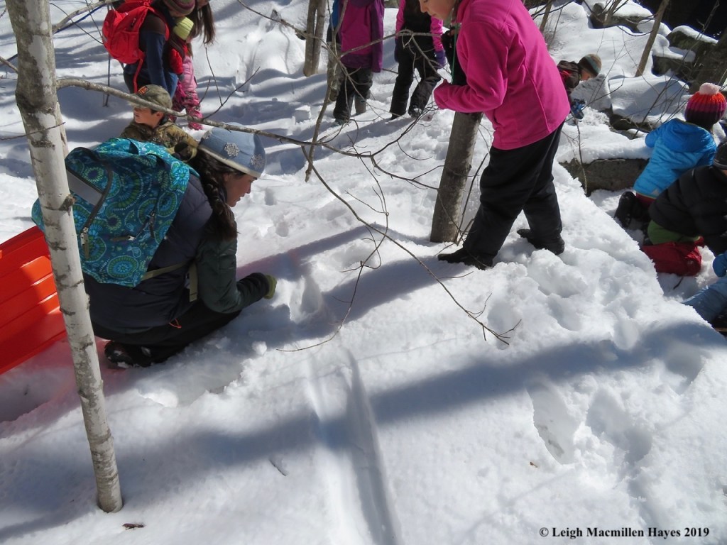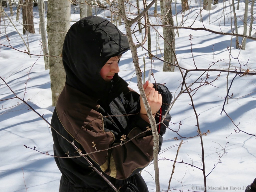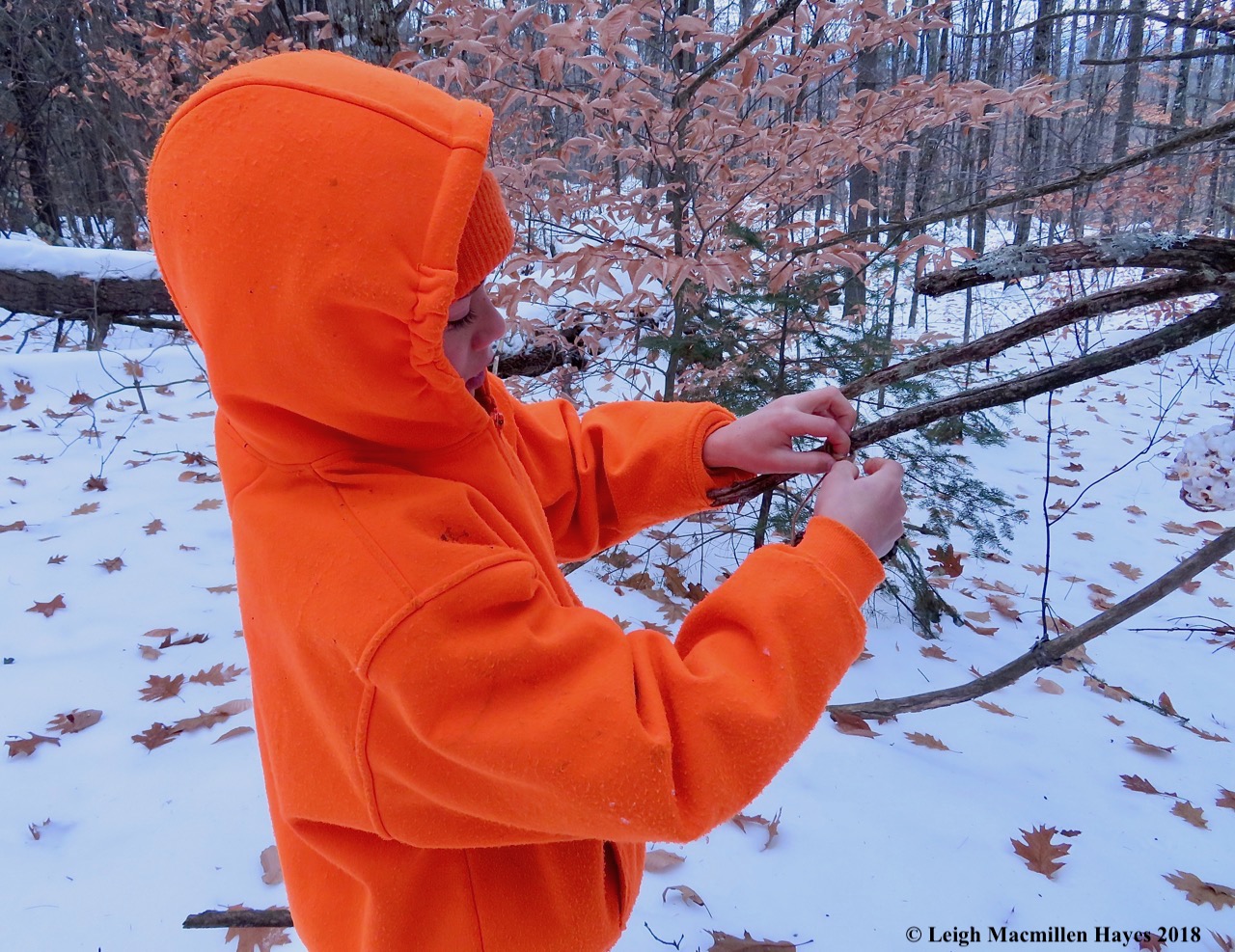 Finally, we all departed and I was only ten minutes late for my quick meet-up, after which I headed back down Route 5 to reconnect with my favorite little naturalists at the Kezar River Reserve across from the Wicked Good Store. There’s a tape across the road, which I suspect was put in place by the local snowmobile club when the ice was questionable on the river, but it remains, which given the recent rain is probably a good thing. We’ll take it down soon, but it has prevented the road from becoming more rutted than normal.
