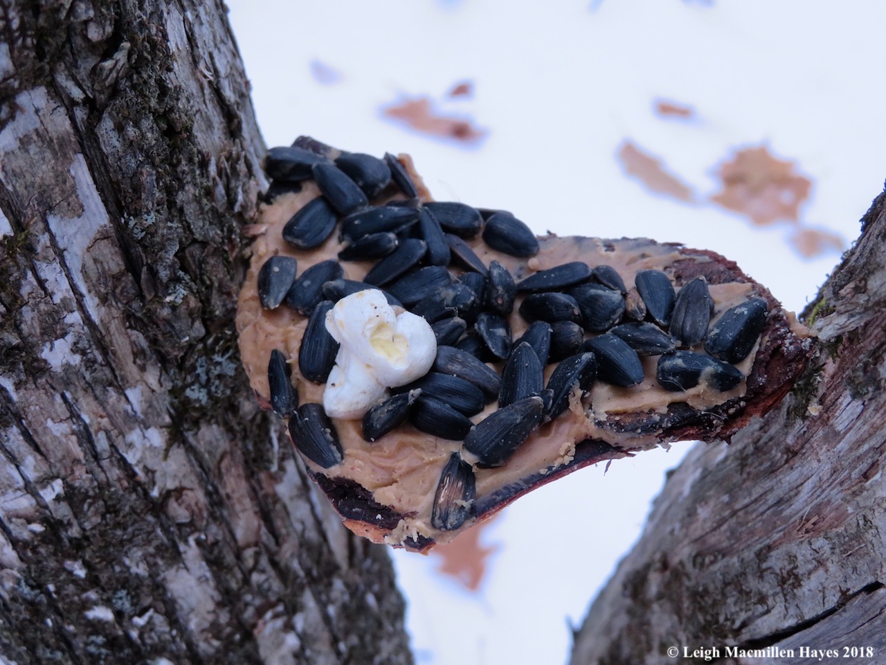 In the summer we avoid these nests for fear of being stung by the aggressive workers who defend their territory. But by now the workers have all died and the queen has found a snug spot to overwinter under tree bark.