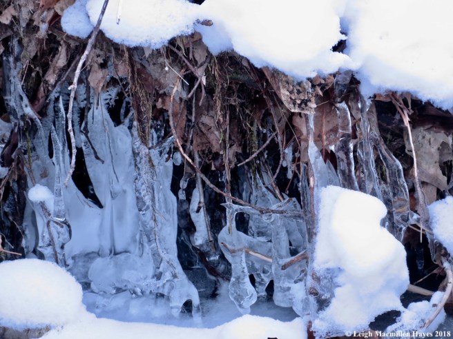 Even within the Pitcher Plant leaves ice had formed. Some of today’s participants touched the downward pointing hairs that draw insects into this carnivorous plant, noting the difference between the easy slide down and much bristlier texture one encounters trying to climb back out.