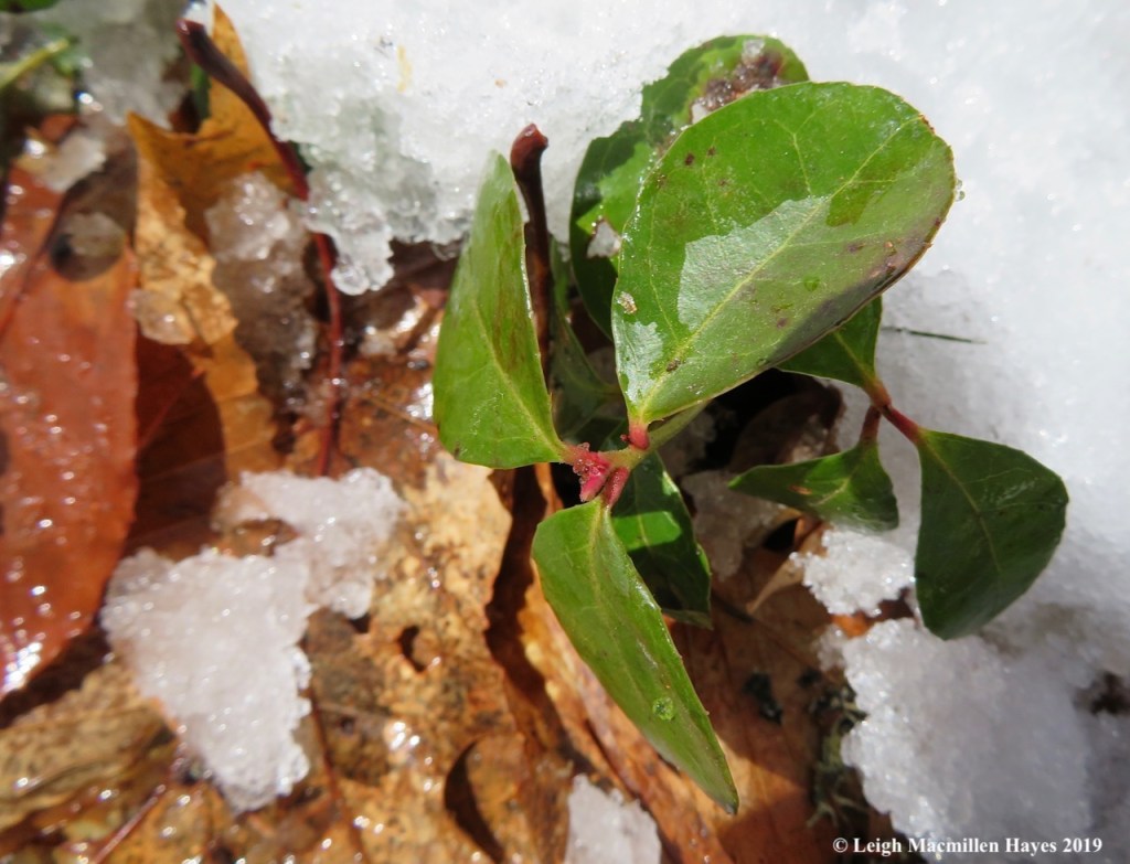 Because I had to meet someone at noon, and Dave knew that it would take us at least a half hour to make the short trek back to our vehicles due to our incessant nature distraction disorder, we had to cut our journey short. Dave was right–as he often is–and we were forced to stop several time, including to sniff a couple of mayflowers, aka trailing arbutus or officially: Epigaea repens.