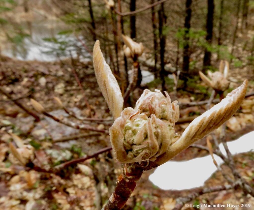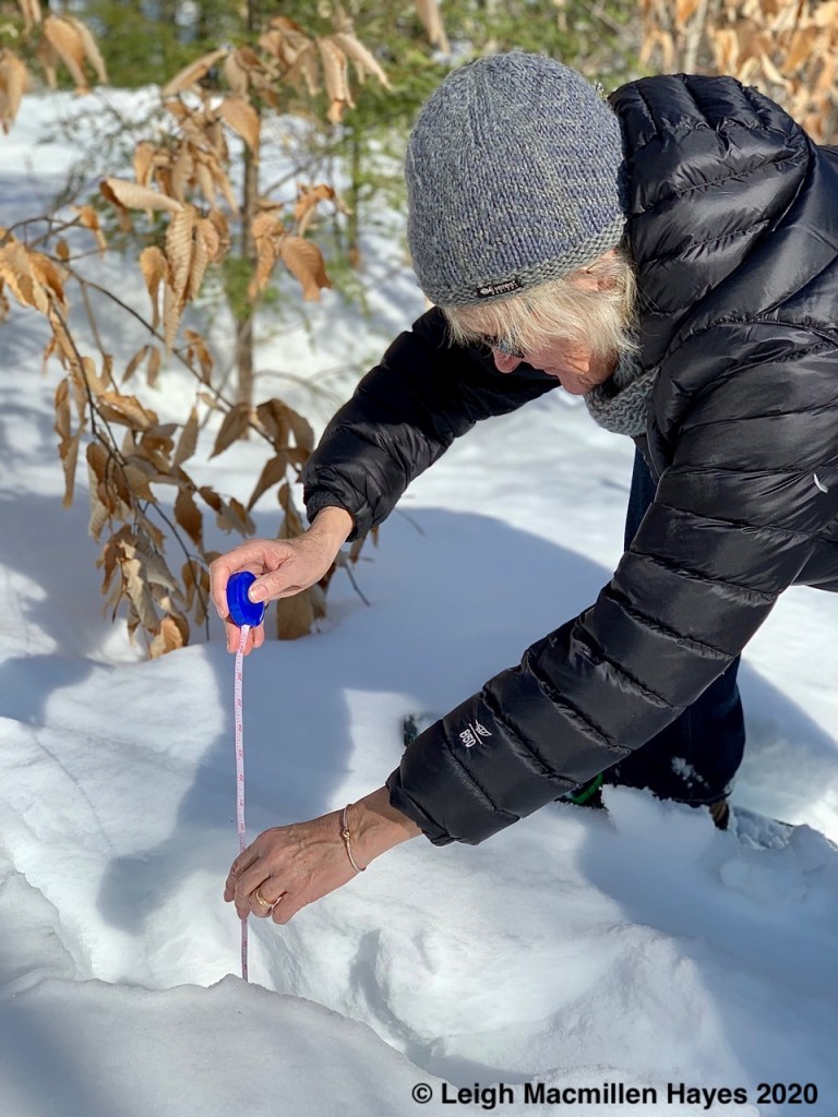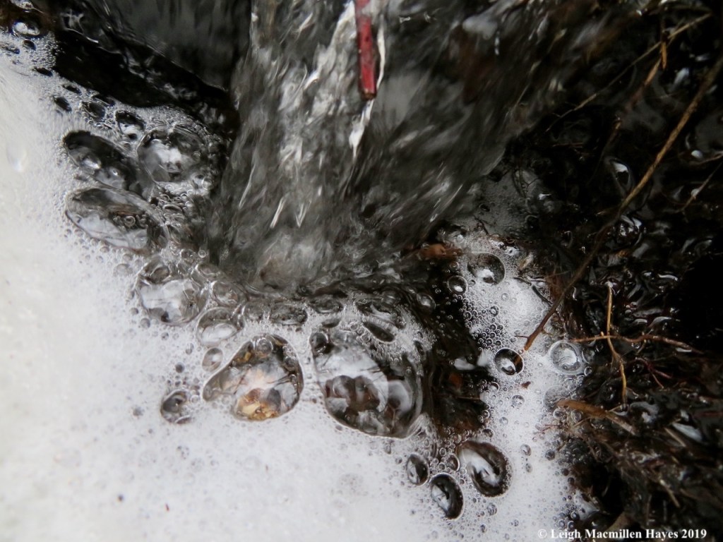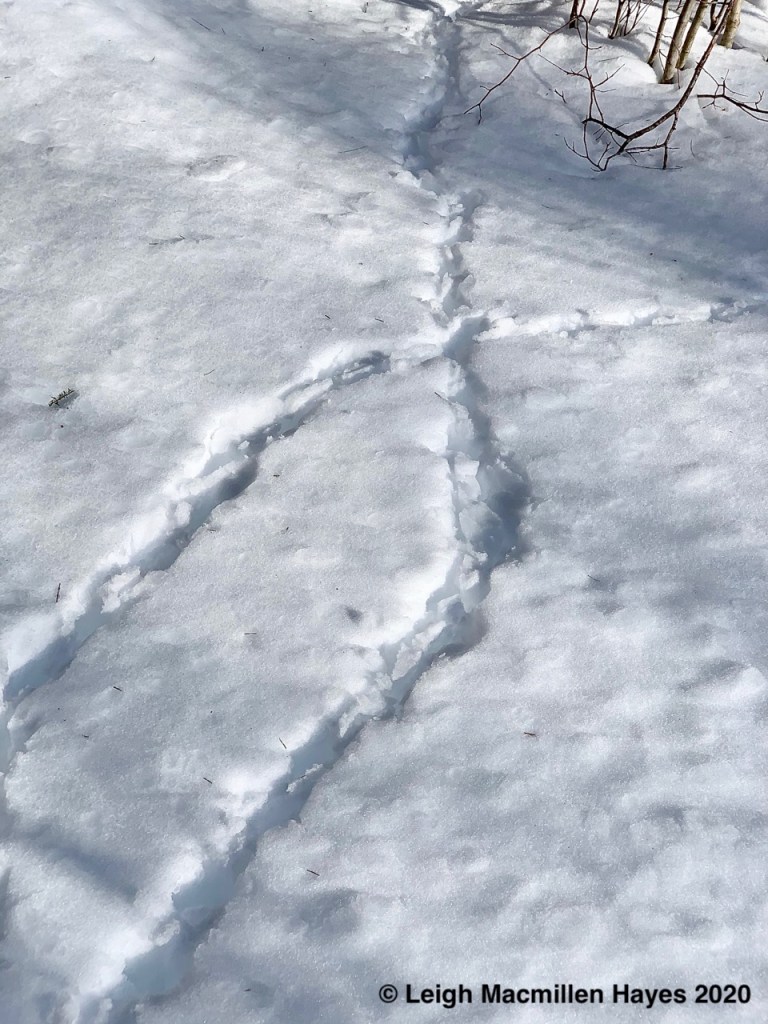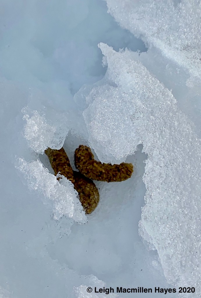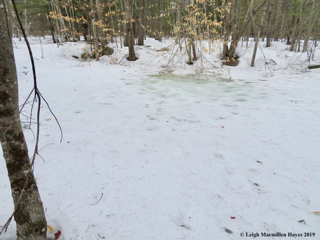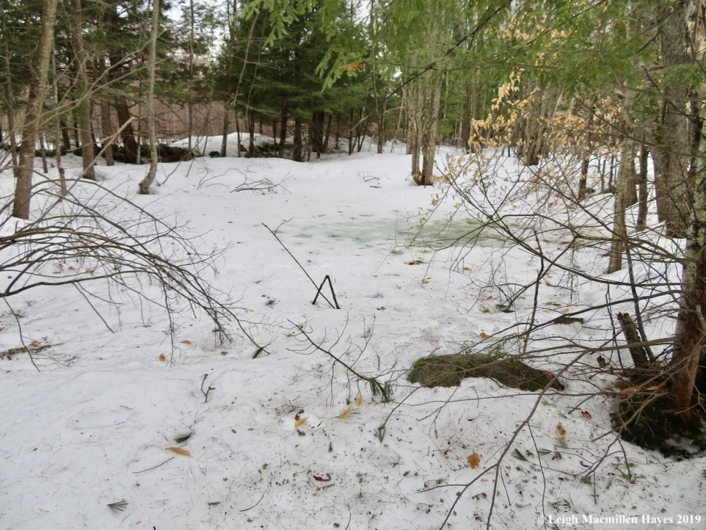We peered into the pool again and were amazed at the number of swelled Wood Frog egg masses in their communal cluster–as is the Wood Frog fashion. perhaps to take advantage of being warmer when crowded together, and thus evolve quicker. It’s the swelling that told us they’d been laid a few days before as initially their egg masses are maybe the size of a golf ball, but swell as they absorb water over the days to come.