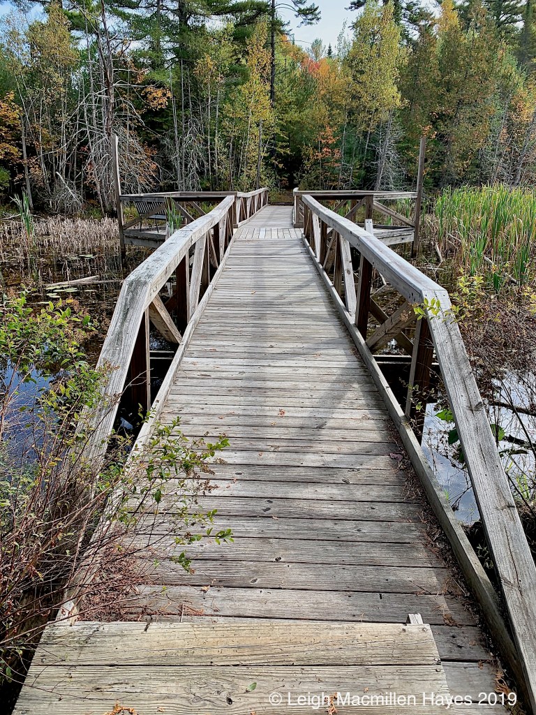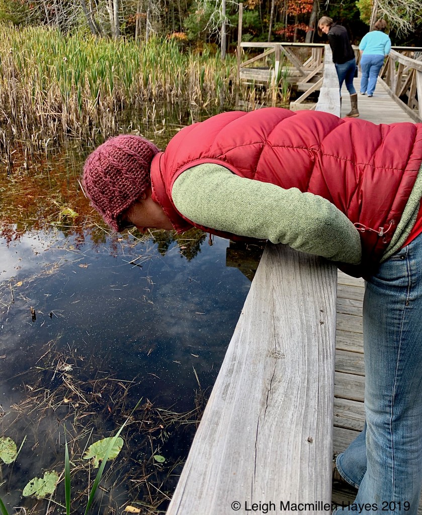 Onto a bridge originally built by students twenty plus years ago in the man-made wetland, we paused to covet the outdoor classroom.