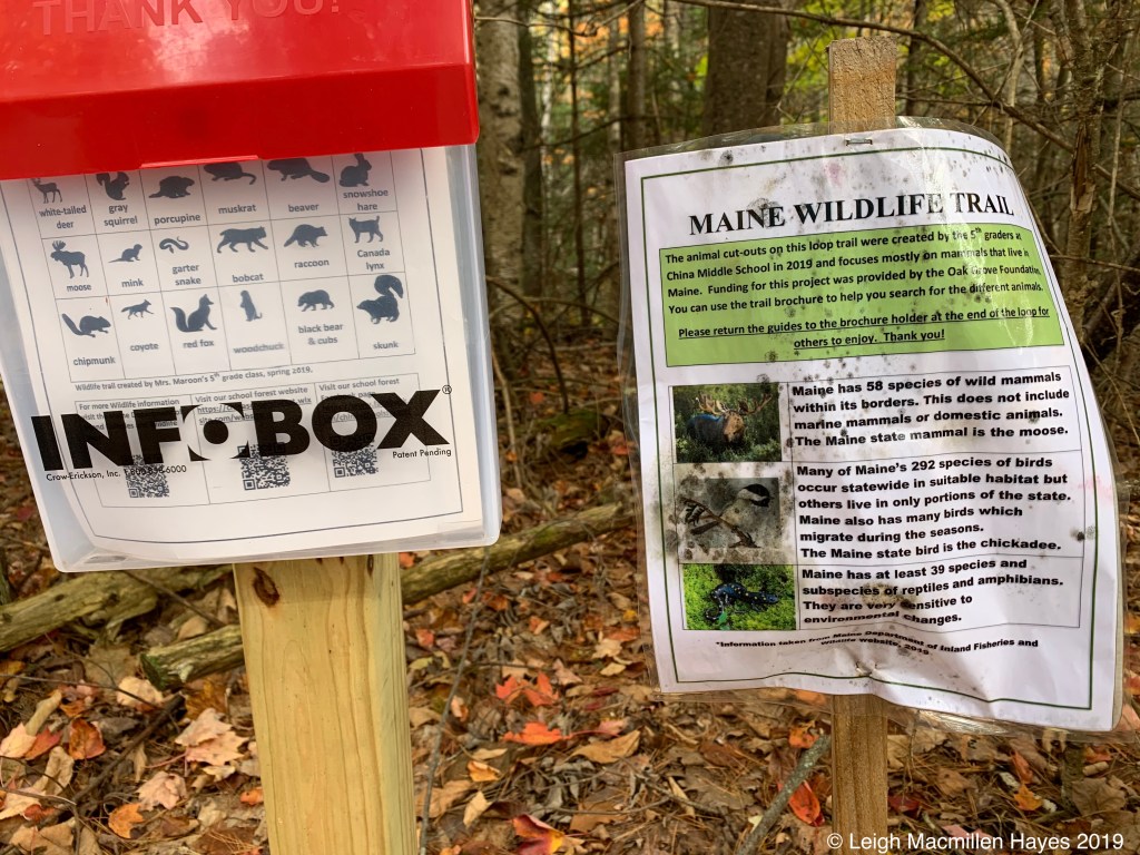 Thanks to Anita and all her volunteers, we spent today wandering the China School’s Working Forest in China, Maine, and loved exploring the twenty or so learning stations set up on the fifty-plus acre forest. Neither Greater Lovell Lovell Land Trust or Lakes Environmental Association can replicate the China School Forest, but our take-away was immense and we loved the opportunities to learn in the forest.