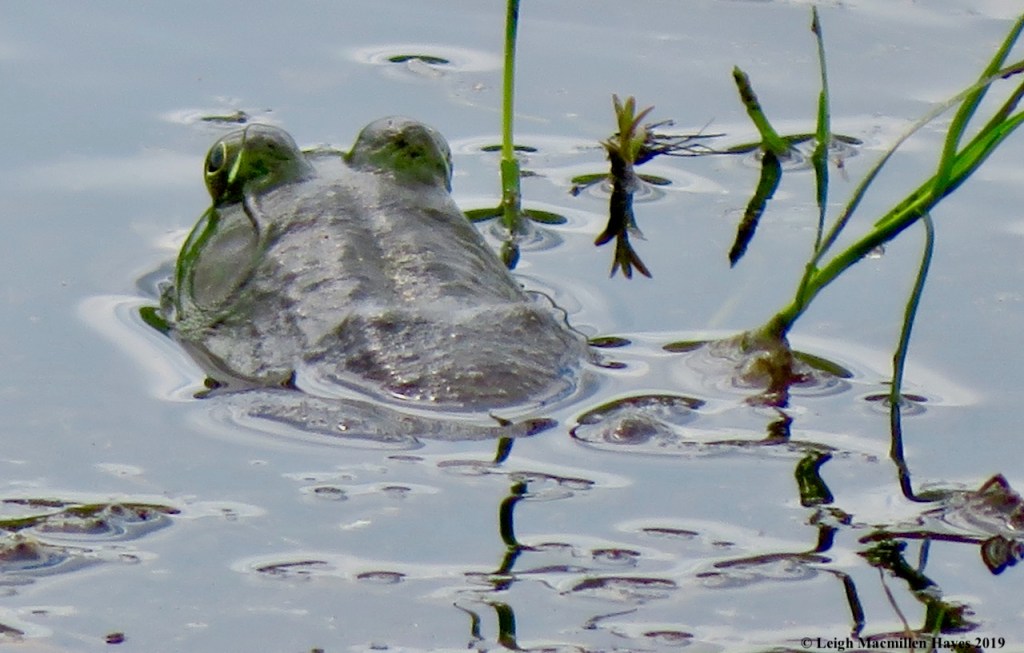 A couple of masses were positioned independent of the rest, like this one–embraced in oak and maple leaves. Eventually, they’ll gain a greenish tinge from algae, which actually helps to camouflage them. One of the many wonders is that any given mass may contain up to 1,000 eggs–from a two-to-three-inch frog.