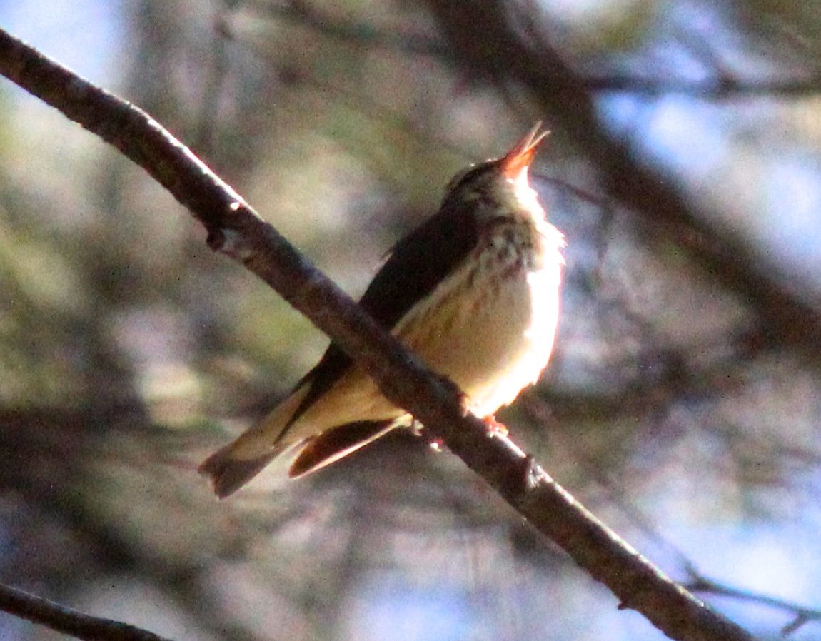 As I mentioned, the trail winds through the woods and over roadways, but also under the Bob Dunning Memorial Bridge, the gateway to Pondicherry Park. If you are following the Stevens Brook Trail, however, you’ll pass under the bridge and it’s worth a look upward–for you just might spot three American Robin nests all in a row.