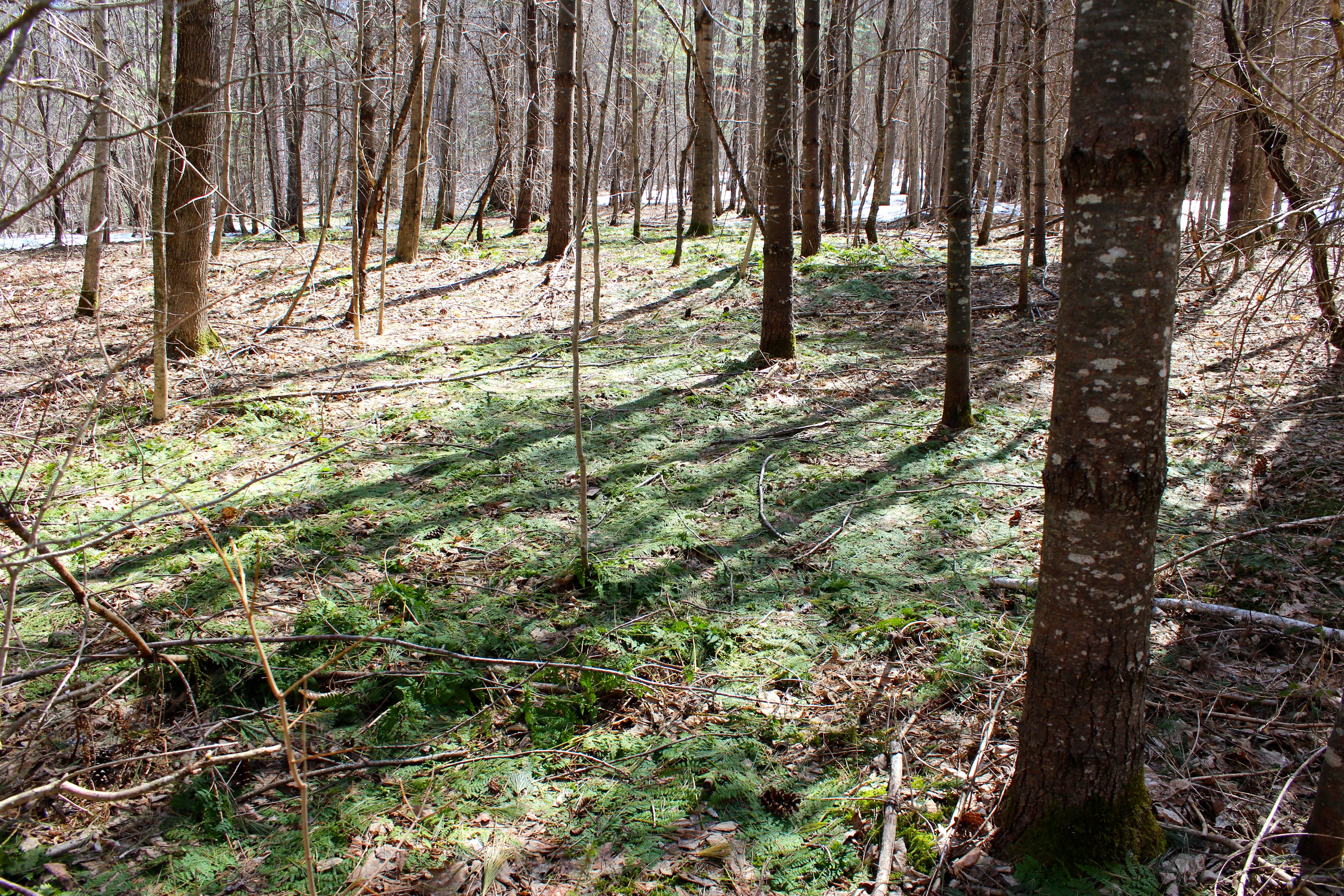 A foundation is still visible on the eastern side of the brook. It’s in that area that there is also evidence of the Walker Sluiceway, one that dodged all the dams so logs could travel from Crotched Pond (Highland Lake) to Long Pond (Long Lake) without impediment.