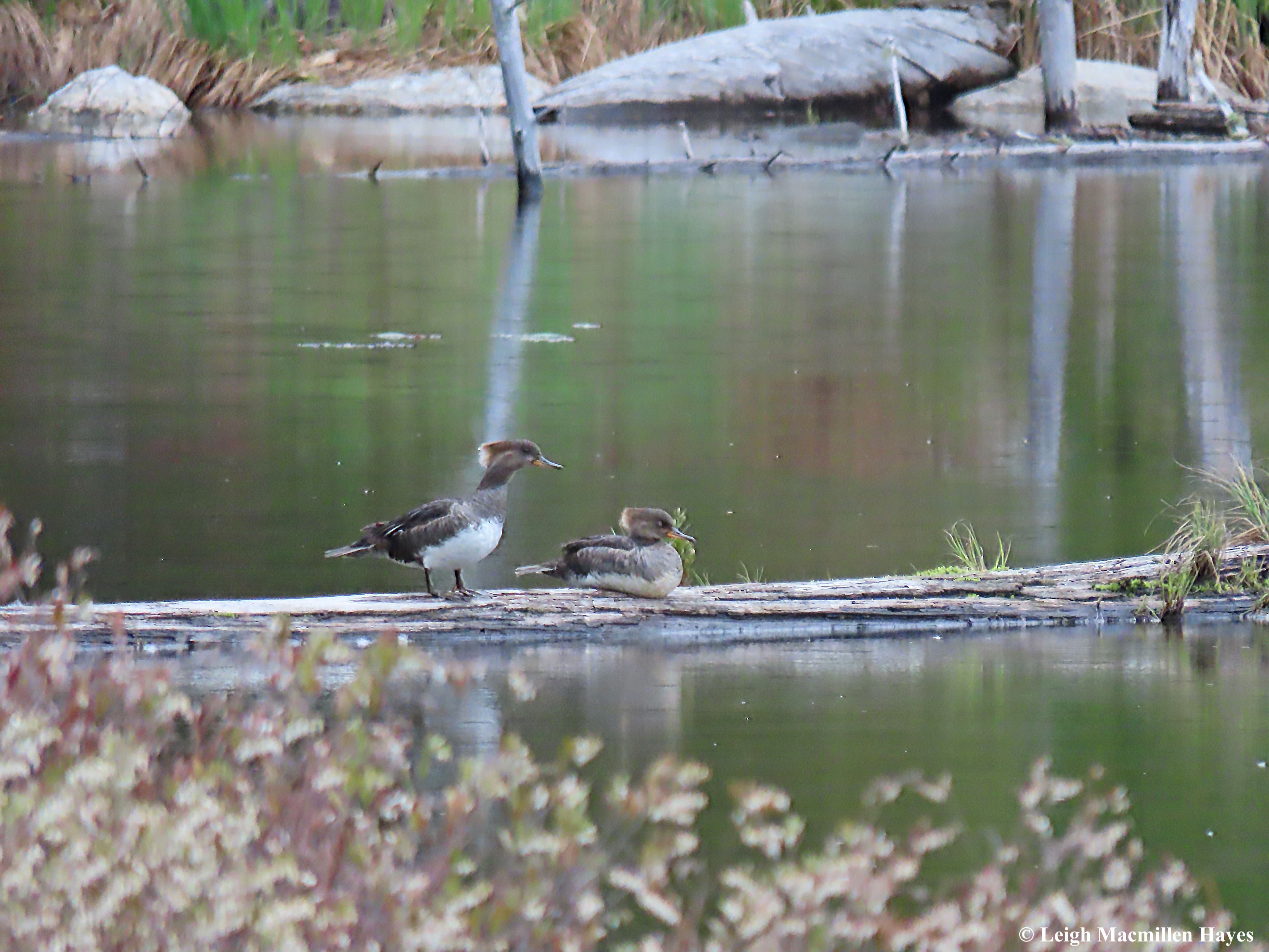 Much to the surprise of both of us, despite the loud crackling of leaves and branches upon which we walked in one place, we didn’t scare all the Wood Ducks off, and enjoyed spending a few minutes with this Momma and Teenager. Usually, this species flies off before we spot them on the water.