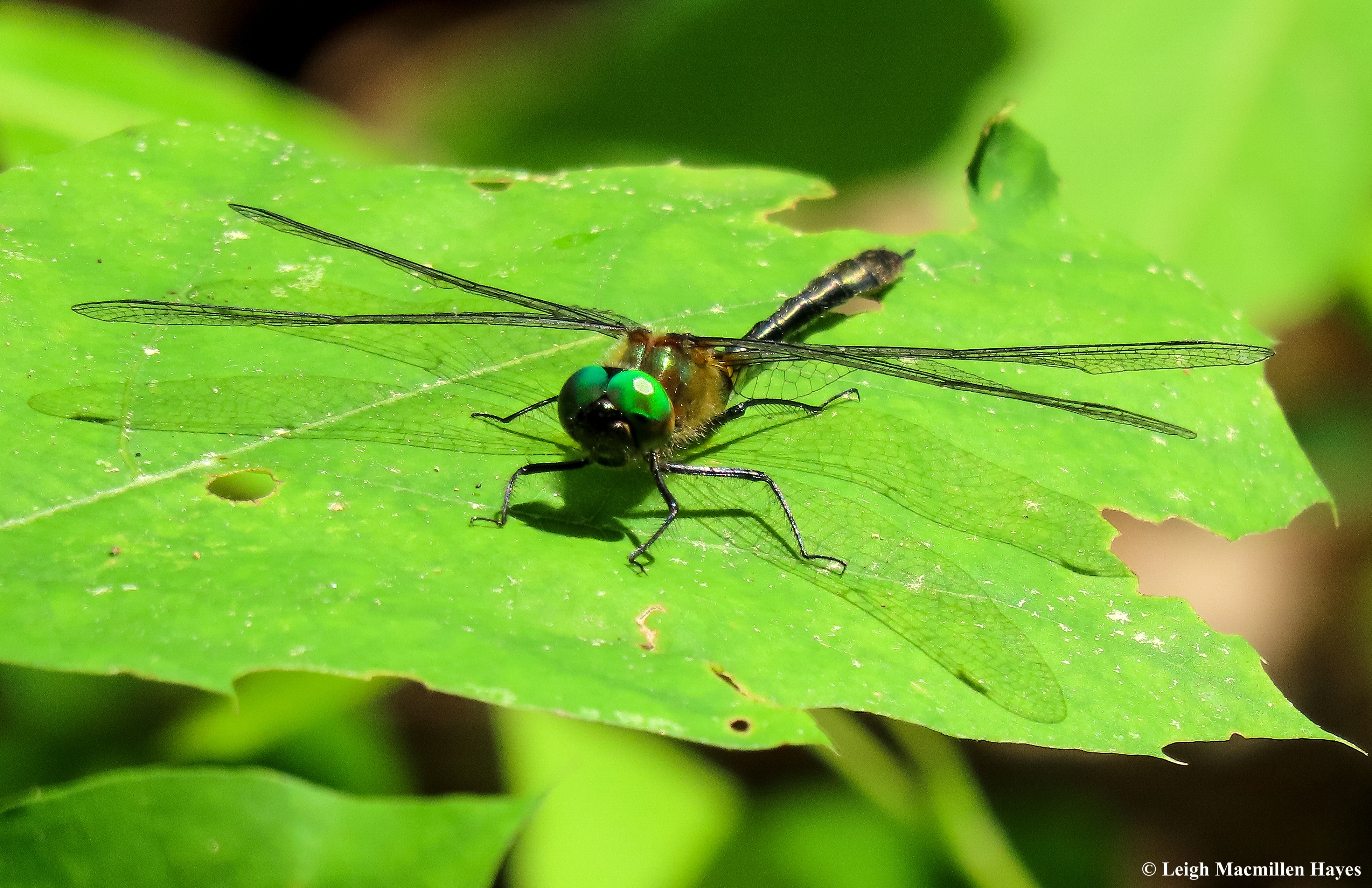 While the Darners are on the largish size in the dragonfly world, most of the Skimmers that are still flying are much smaller. The Blue Dasher, as this is, is probably considered medium in size.
