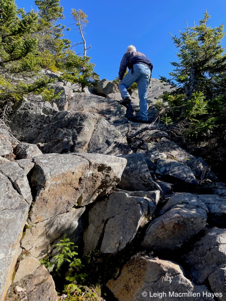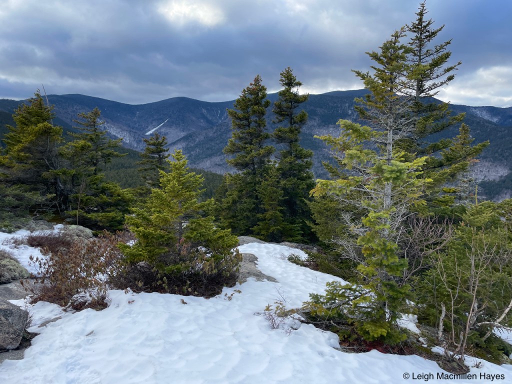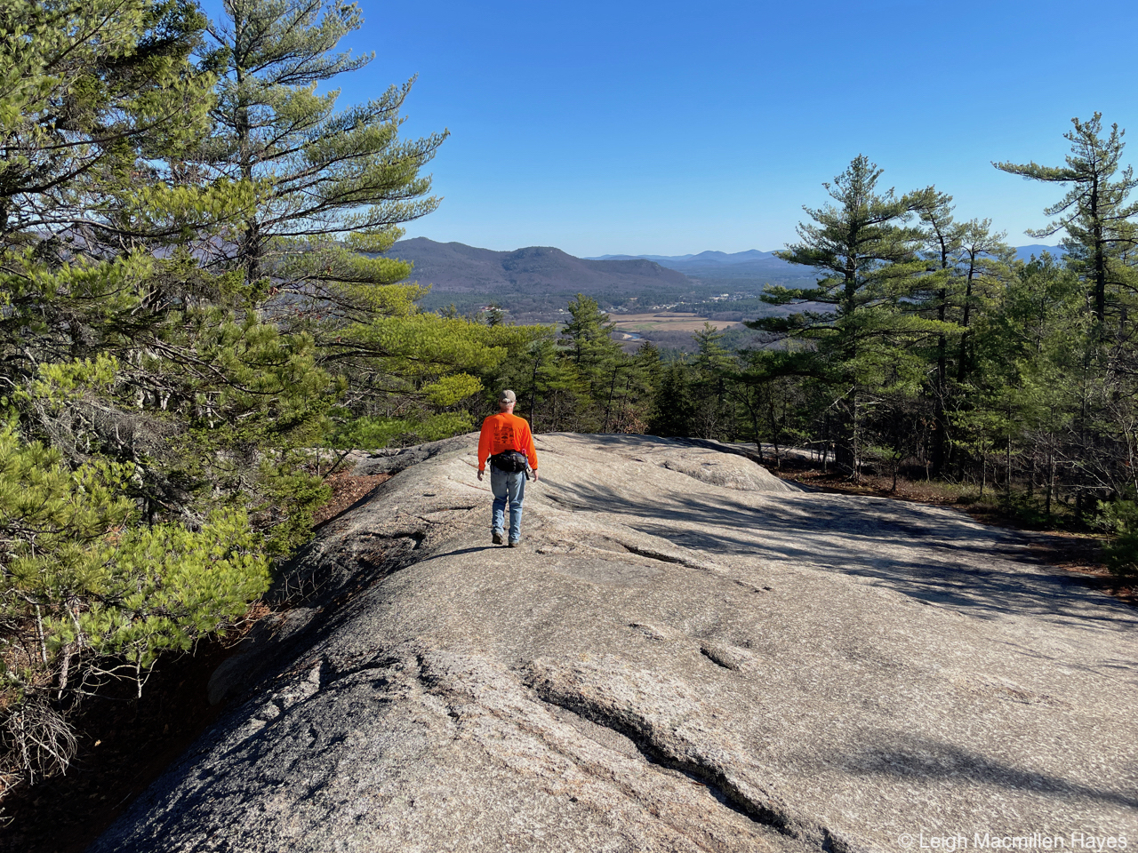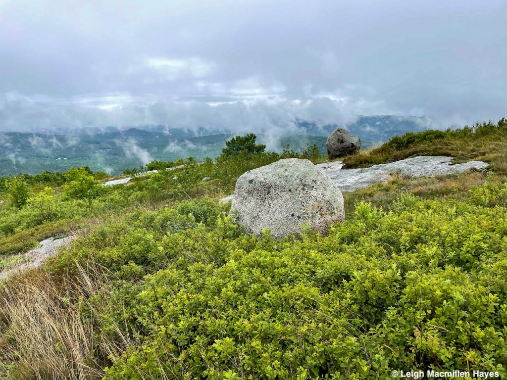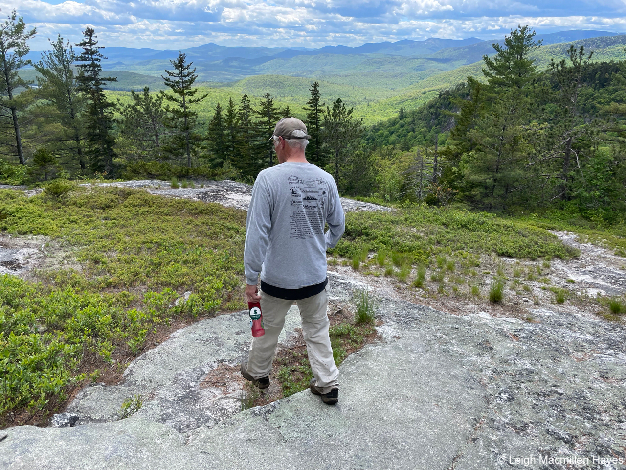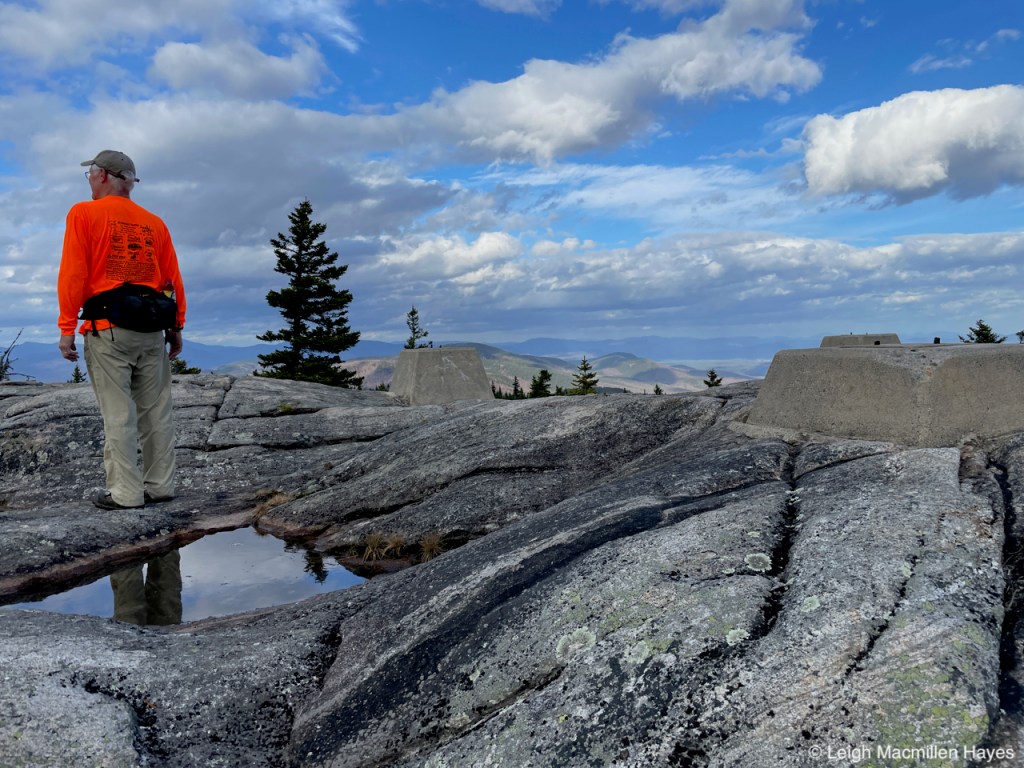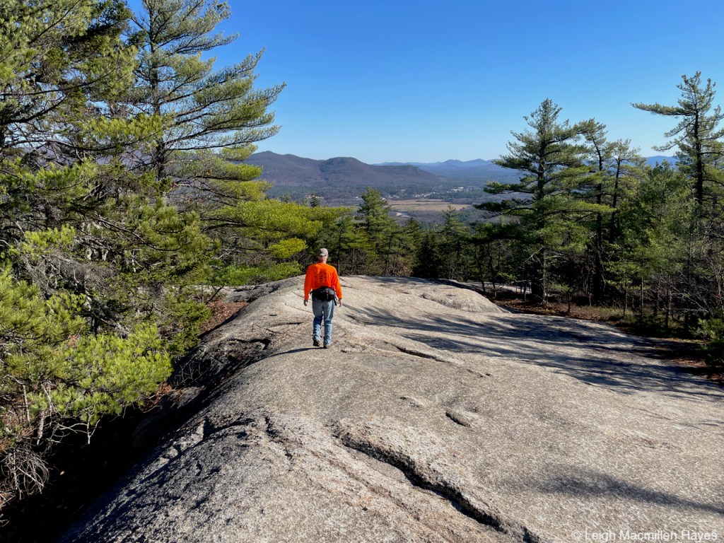 And so we headed off on the Oak Hill Tower Trail, with a plan to stay to the right, or was it the left, as we are direction-challenged, but really, we did know where we wanted to go and the vista spots that we wanted to experience, such as this one where we could see Mount Sunapee and Mount Kearsarge (not Kearsarge North that I’m more familiar with) in the distance. That said, I did record our journey on my GPS.