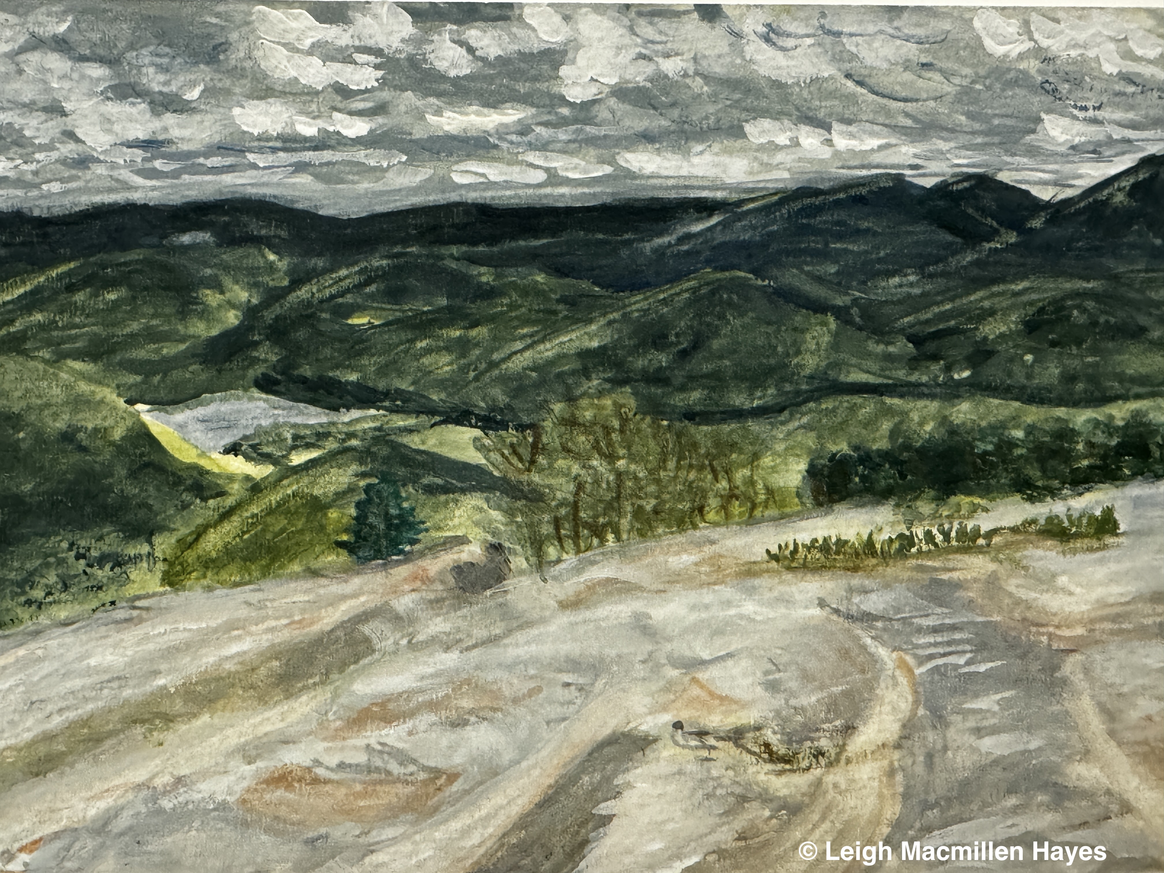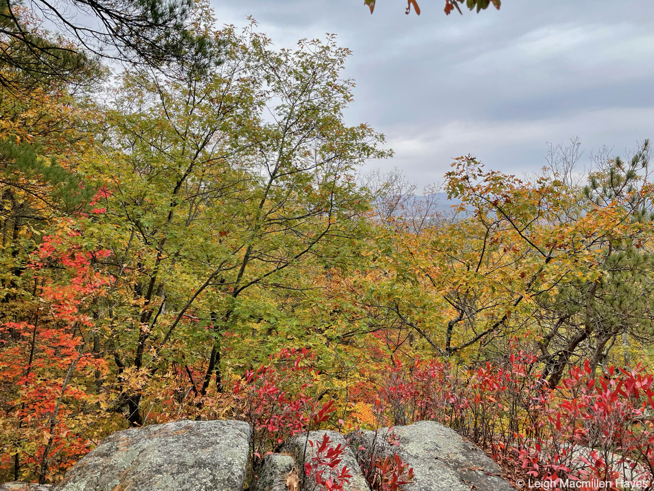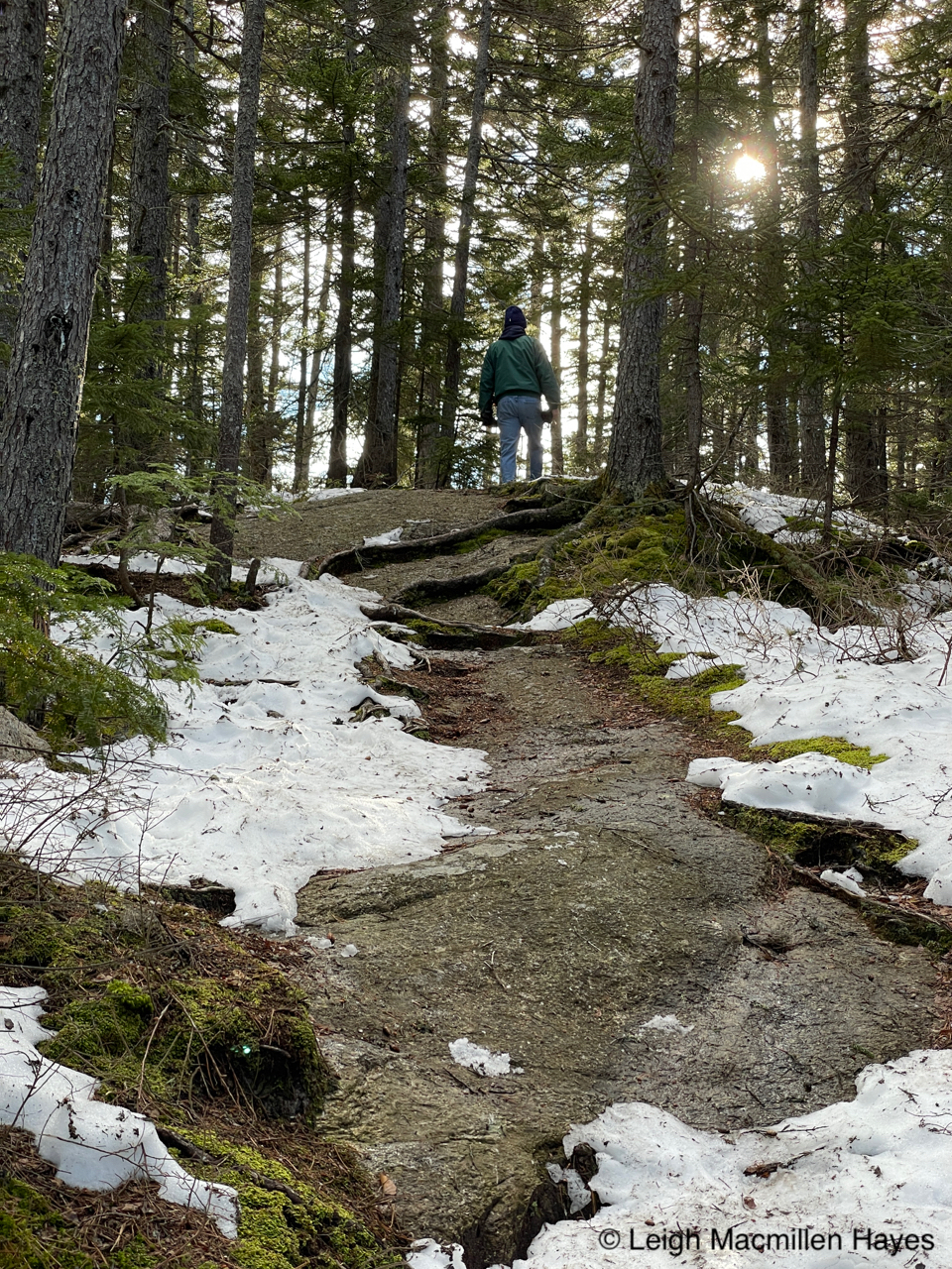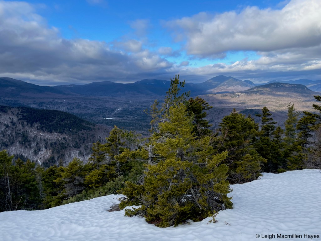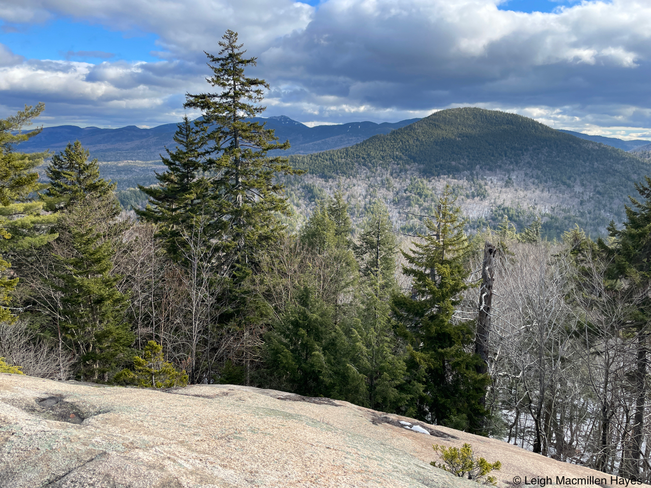 And so we headed off on the Oak Hill Tower Trail, with a plan to stay to the right, or was it the left, as we are direction-challenged, but really, we did know where we wanted to go and the vista spots that we wanted to experience, such as this one where we could see Mount Sunapee and Mount Kearsarge (not Kearsarge North that I’m more familiar with) in the distance. That said, I did record our journey on my GPS.