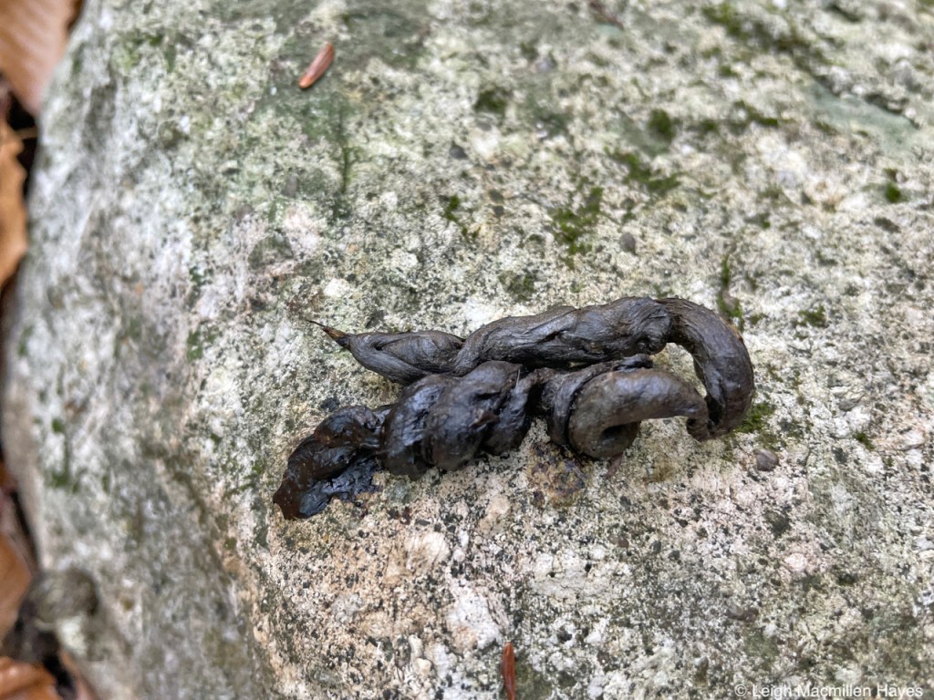 Our next great find was a fun one for me. I’m not sure she was quite as impressed, but she did want to know where all the fur may have come from in this Red Fox scat. We weren’t in Snowshoe Hare territory, but we were certainly in squirrel and vole habitat and so it could have been a combination that helped to form this twisted specimen with its blunt form on one end and tail on the other.