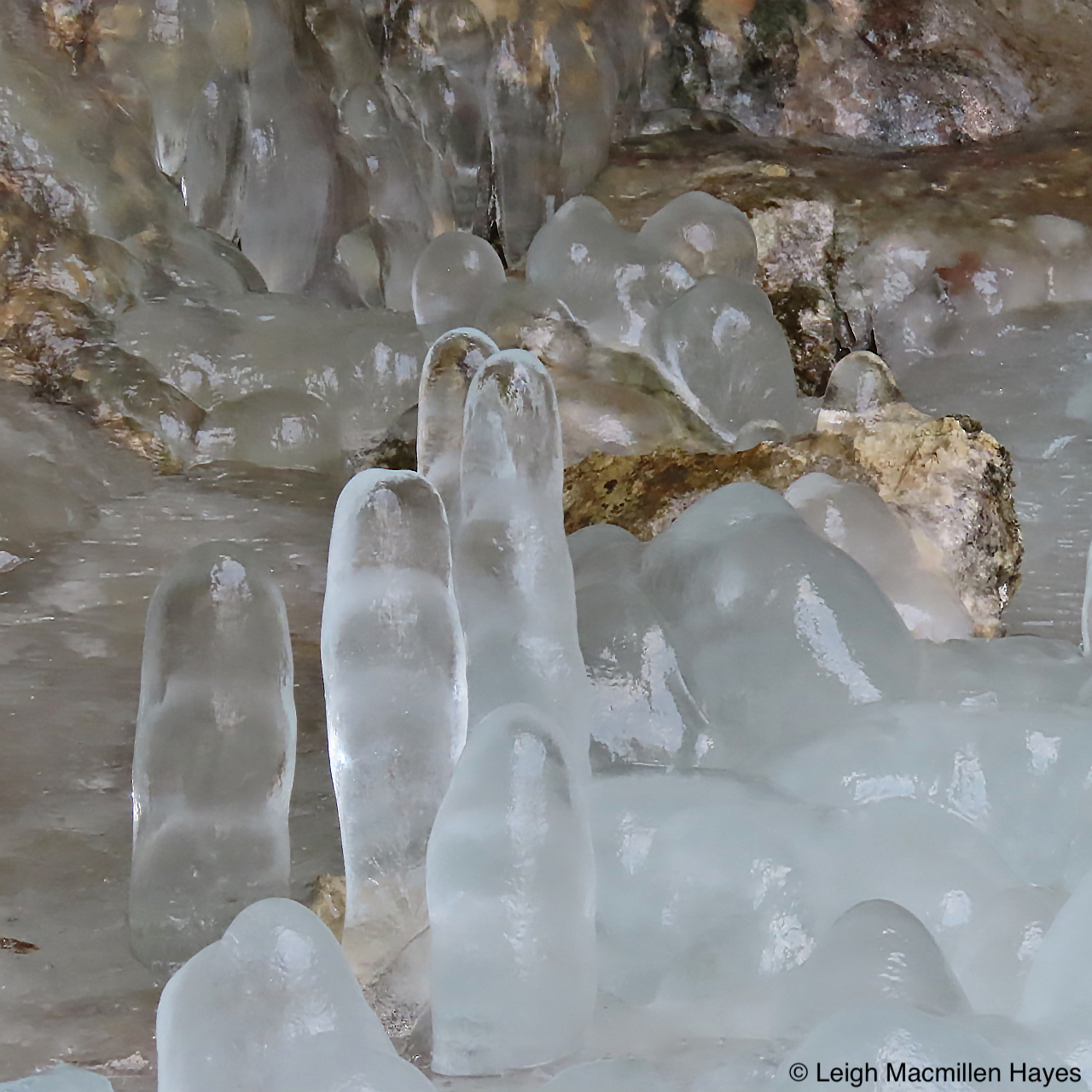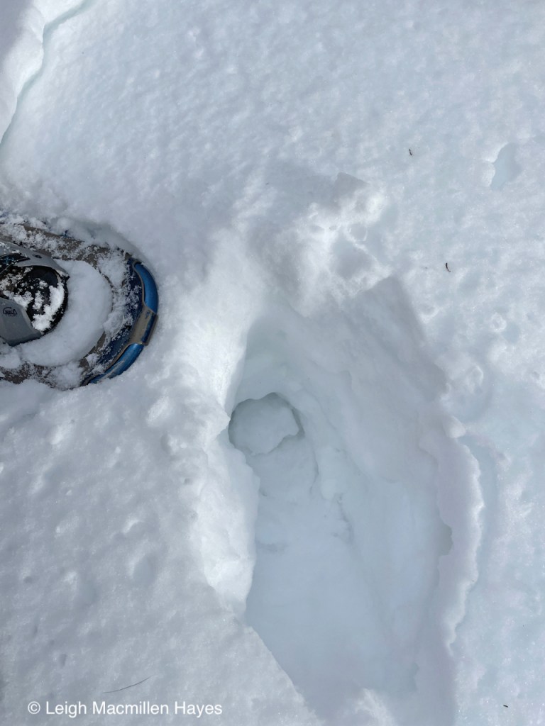 Not far from our turn-around point we reached more water and though we couldn’t find the actual Beaver Lodge, we did note that a skim of ice had formed. And the ice-covered water reflected the Bluebird day we were enjoying.