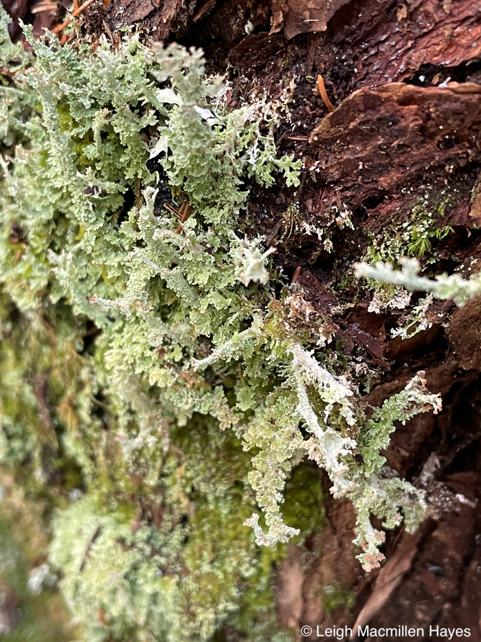 Because we were catching up as well as reminiscing about our junior and senior high school years, we let our tween or teen selves kick into action every once in a while, including by pouring water upon some dried and brown Rock Tripe. We watched with awe as the algal component of this umbilicate lichen immediately kicked into action and the “leafy” parts turned green and became more pliable.