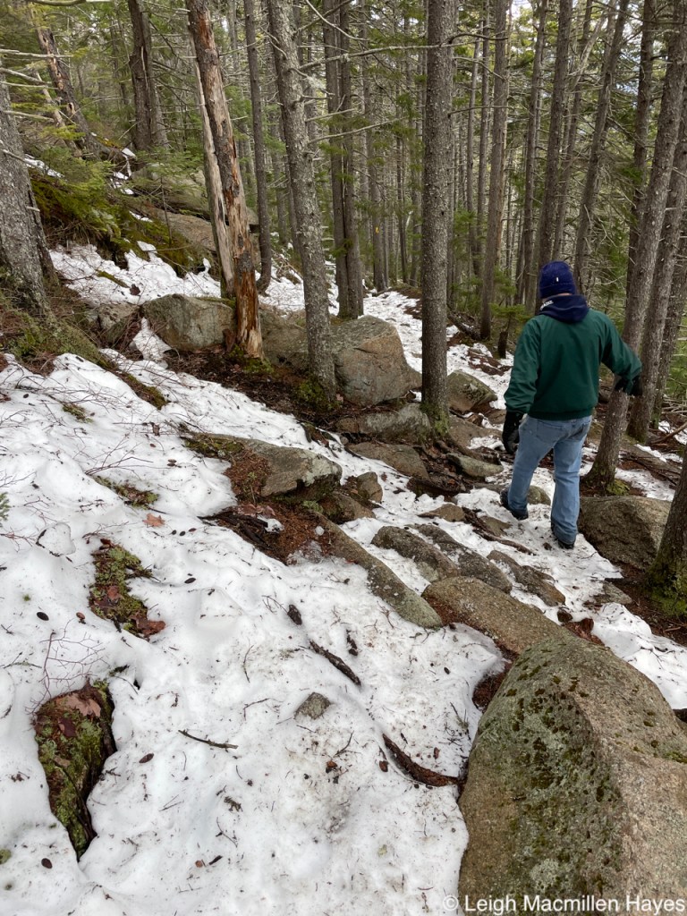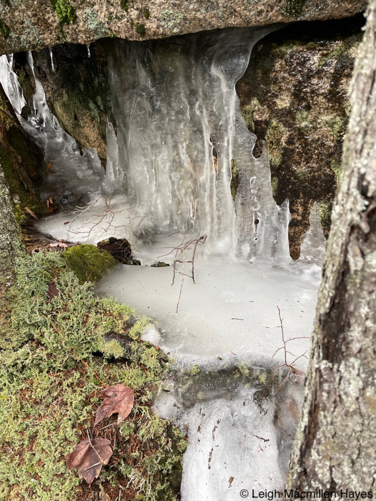The next day found us upon a different trail that had been part of a working farm from the 1700s until about a year ago and known as Dimond Hill. Barbed wire that once kept animals in or out had become part of a stump, which often happens when a tree sprouts beside a boundary and over time grows around the obstacle so that they seemingly become one.