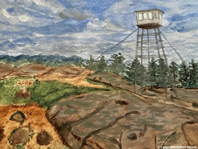 About an hour and a half after we began our journey, we reached the old fire tower for which the trail was named and noted also the house where the fire rangers would have bunked when it was necessary to step out of the cab at the top of the tower (think thunderstorm).