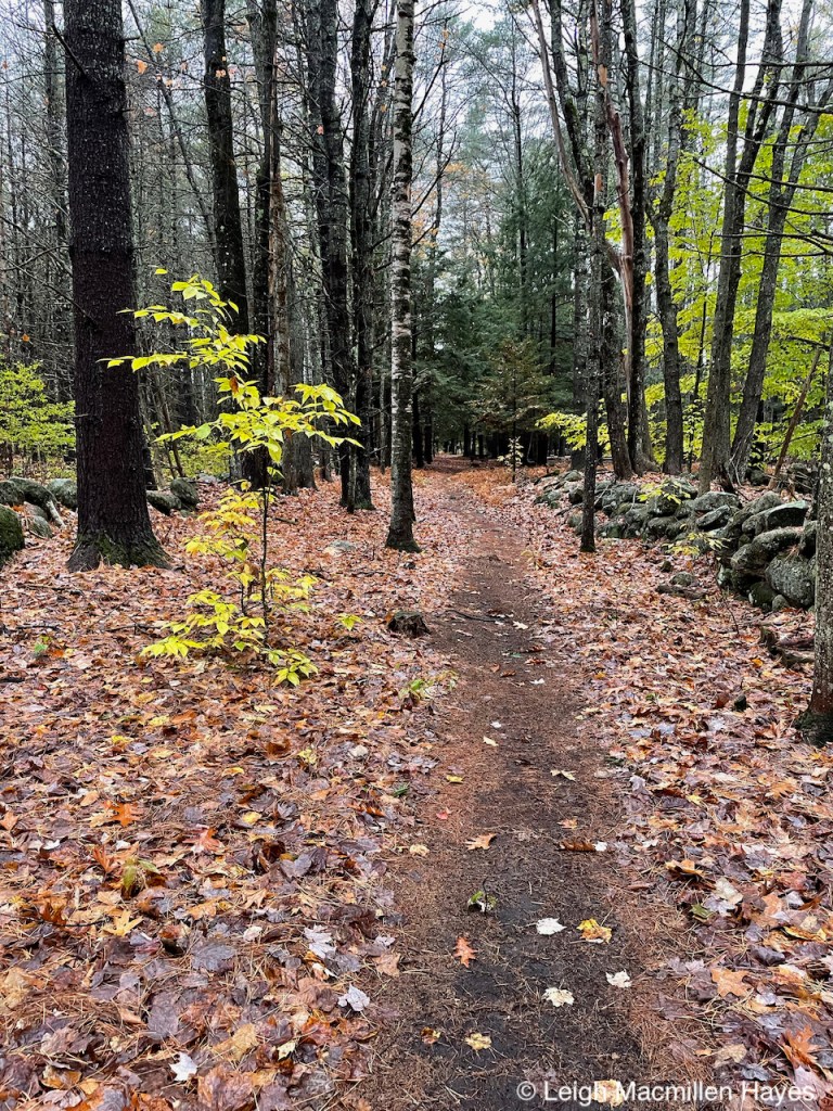 My journey took me across a few more stone walls and through a hemlock grove. I lost the fox, but followed the coyote and then I found others including squirrels, deer and turkeys.