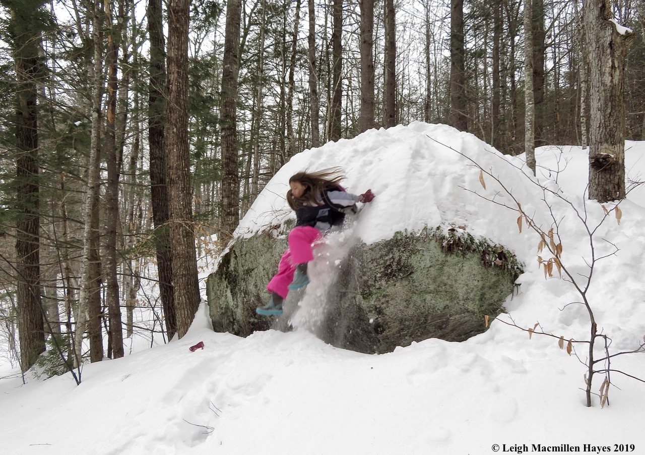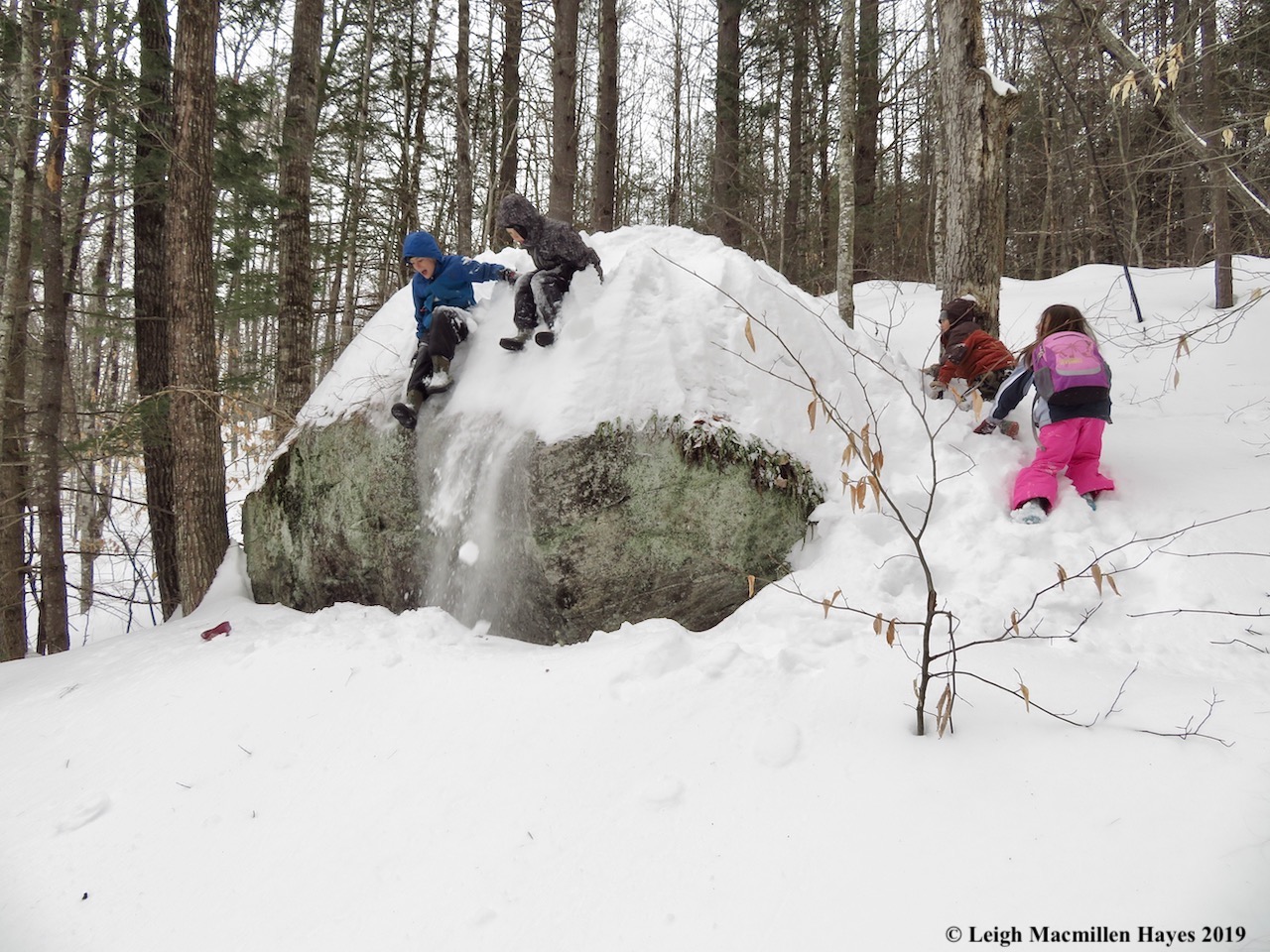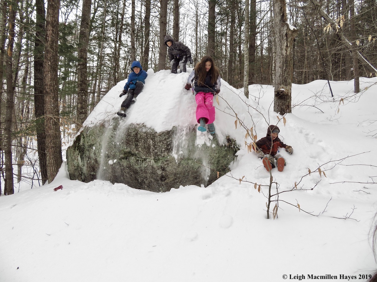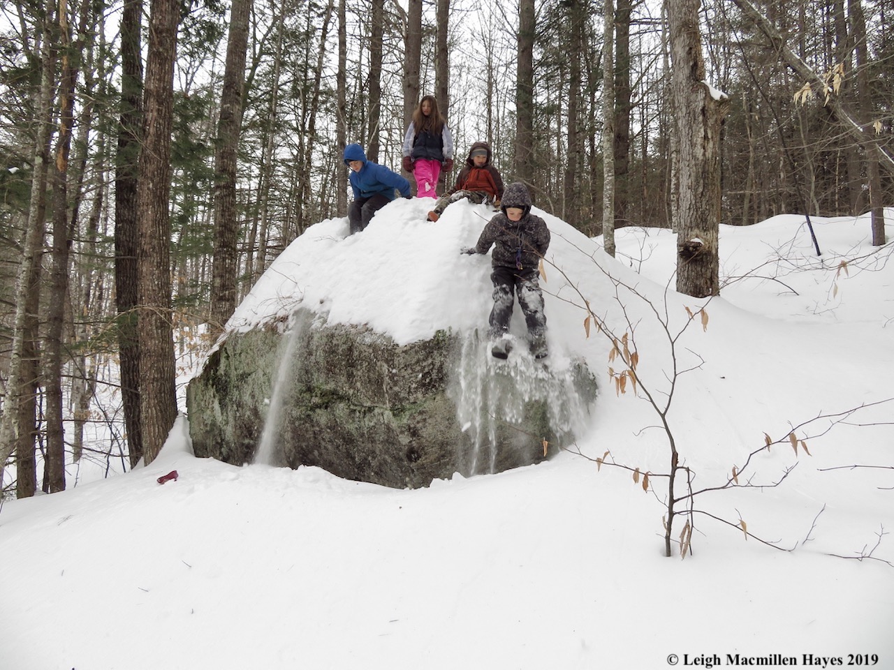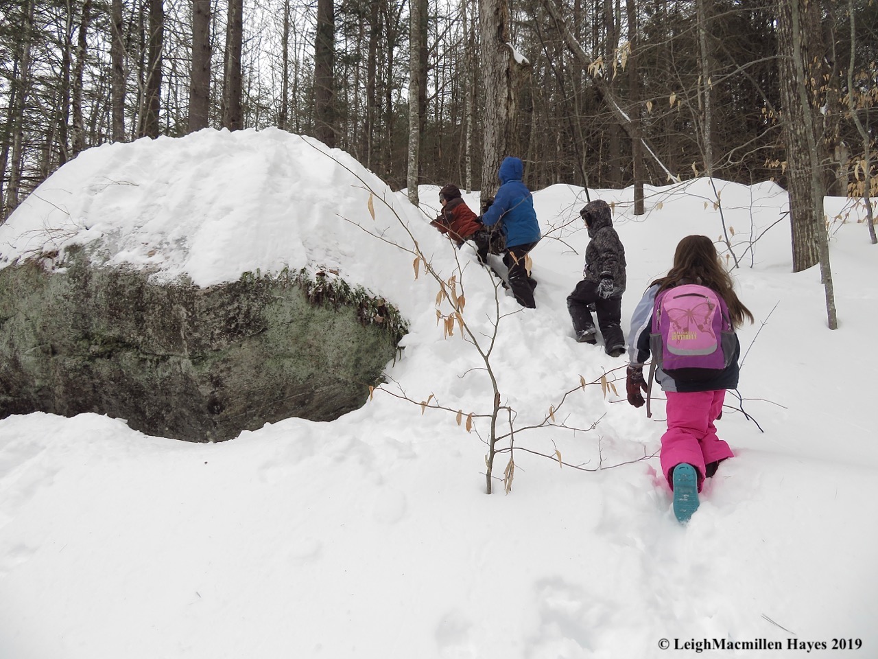 Each week I try to find a different location, thinking fairly flat for locomotion and with natural elements that will bring out their sense of wonder. The first isn’t always easy, especially given the amount of snow and ice we’ve had this winter; but the second is a cinch since there’s so much to wonder about in our little corner of the world. When we started these walks in the fall, I did not expect that we’d continue weekly throughout the winter. But we have.