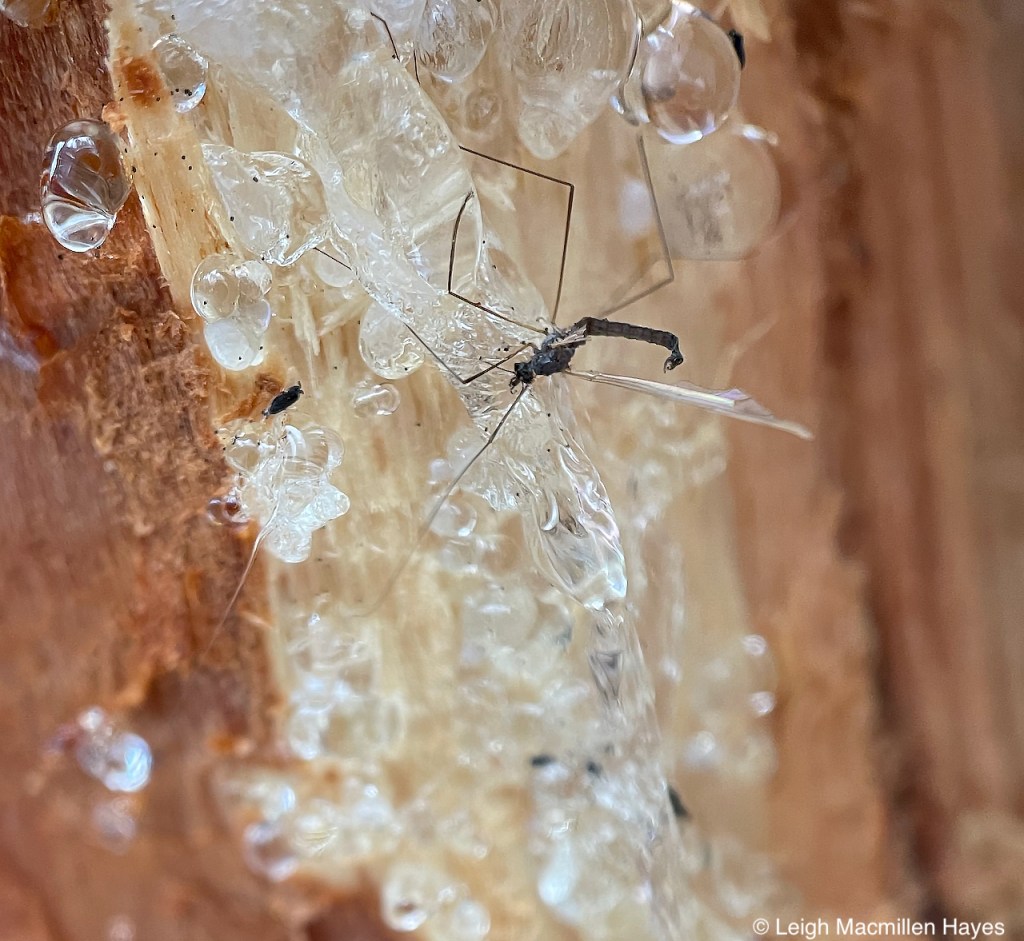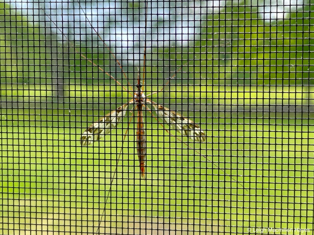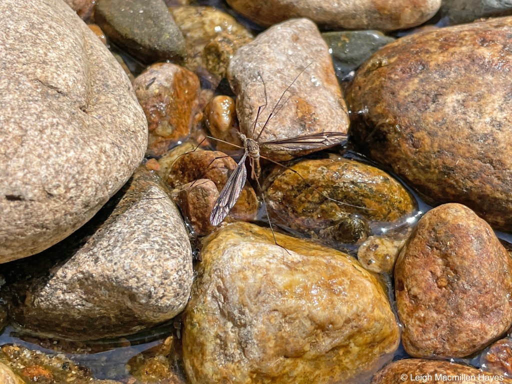 One of the most beautiful, and also most difficult to spot, is the Phantom Crane Fly, so named for its black and white markings. As it floats through the air, for I swear it looks like a little box adrift rather than an insect that is flying, its presence is so subtle that it is easy to miss because it blends in with both light and shadows. Shady edges of wetlands are its preferred habitat and that’s exactly where this specimen and a bunch more were spotted . . . at least in the moment. Finding them to photograph is not easy.