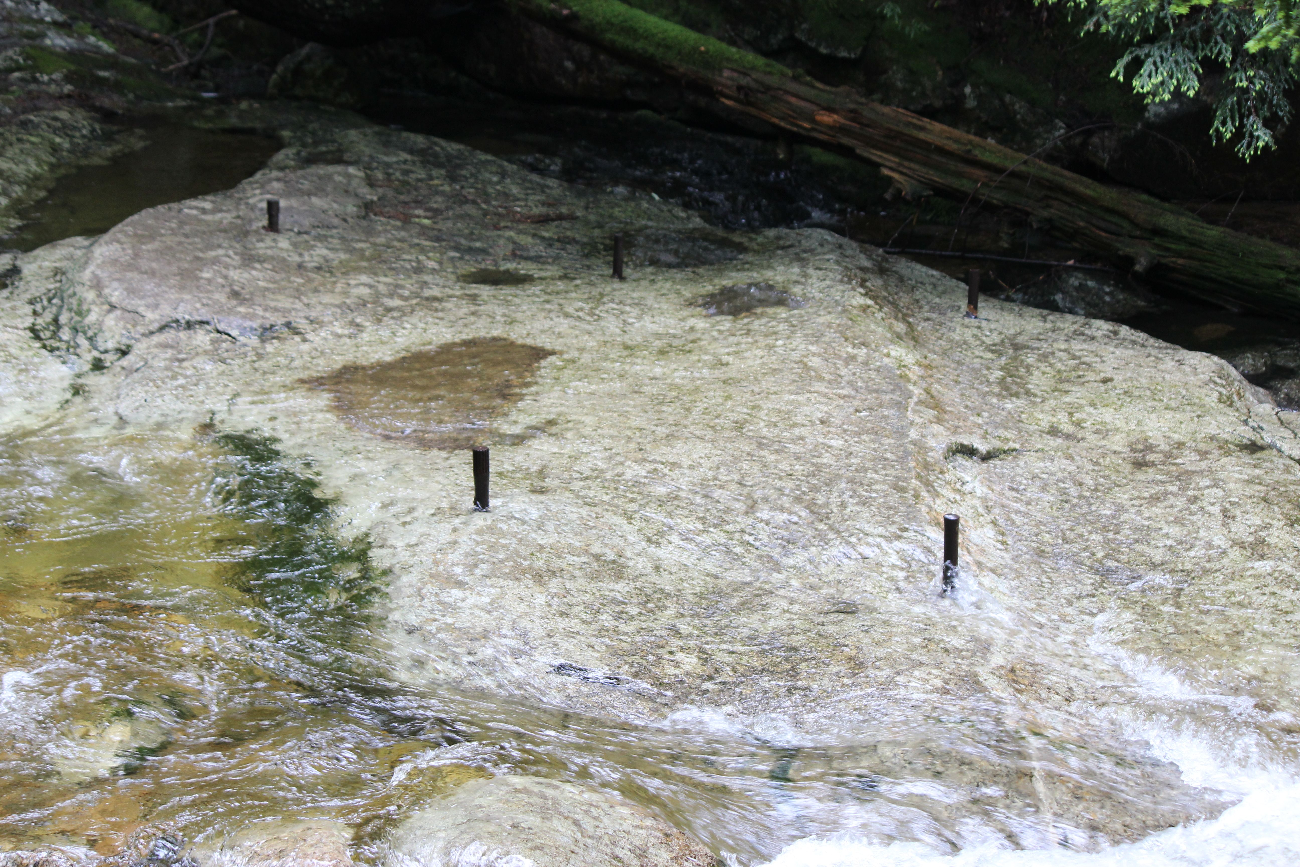 After a steady climb among rocks and roots, we reached level land and bog walkways–thanks to the AMC employees and volunteers who worked on new passageways. Talk about getting into your work–check out the mud on this guy and he wasn’t the only one. We met others who had worked for the AMC 30 years ago and were volunteering their time and expertise to complete the trails that we all may enjoy. I hope there was a chilled beer at the end of their day because they were all muddy and sweaty, but smiled as they worked and suggested ways for us to bypass the mud.