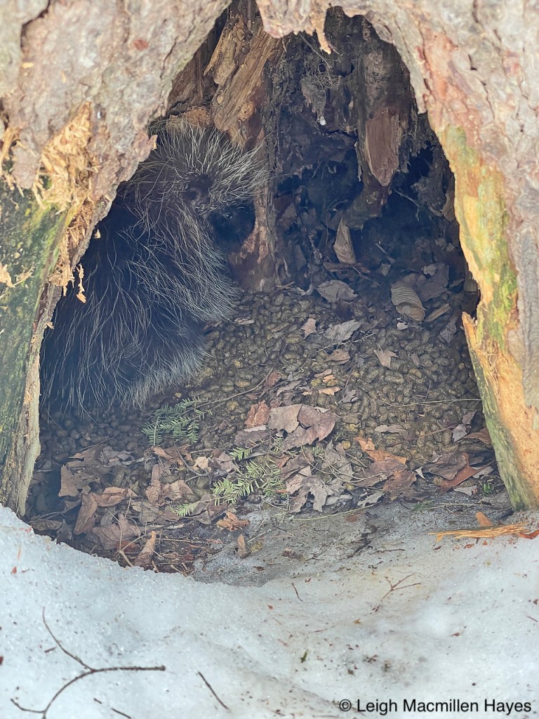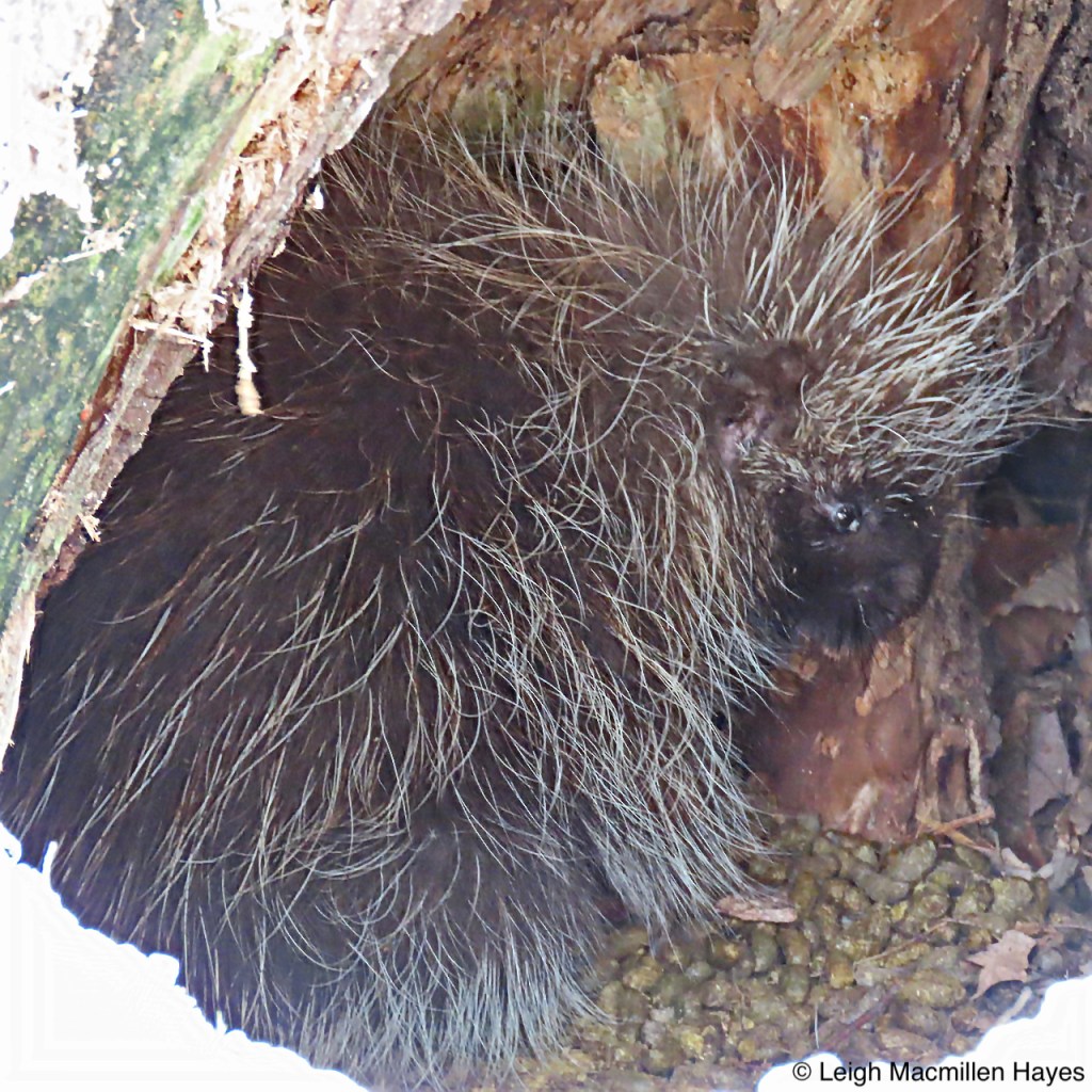 He wasn’t aware of me, for the quills on this Porcupine’s back were not raised. Apparently I didn’t smell all that sweaty after all, for their sight and hearing are not great, but they do have a sense of odors, hard to believe given how much the scat that surrounds their dens stinks.