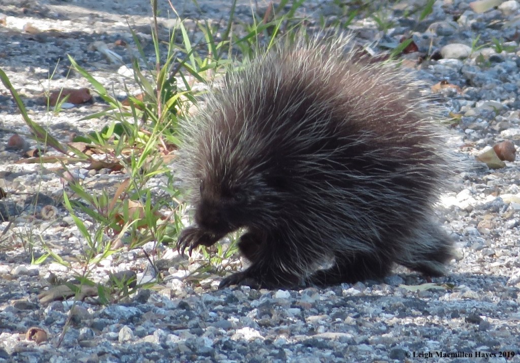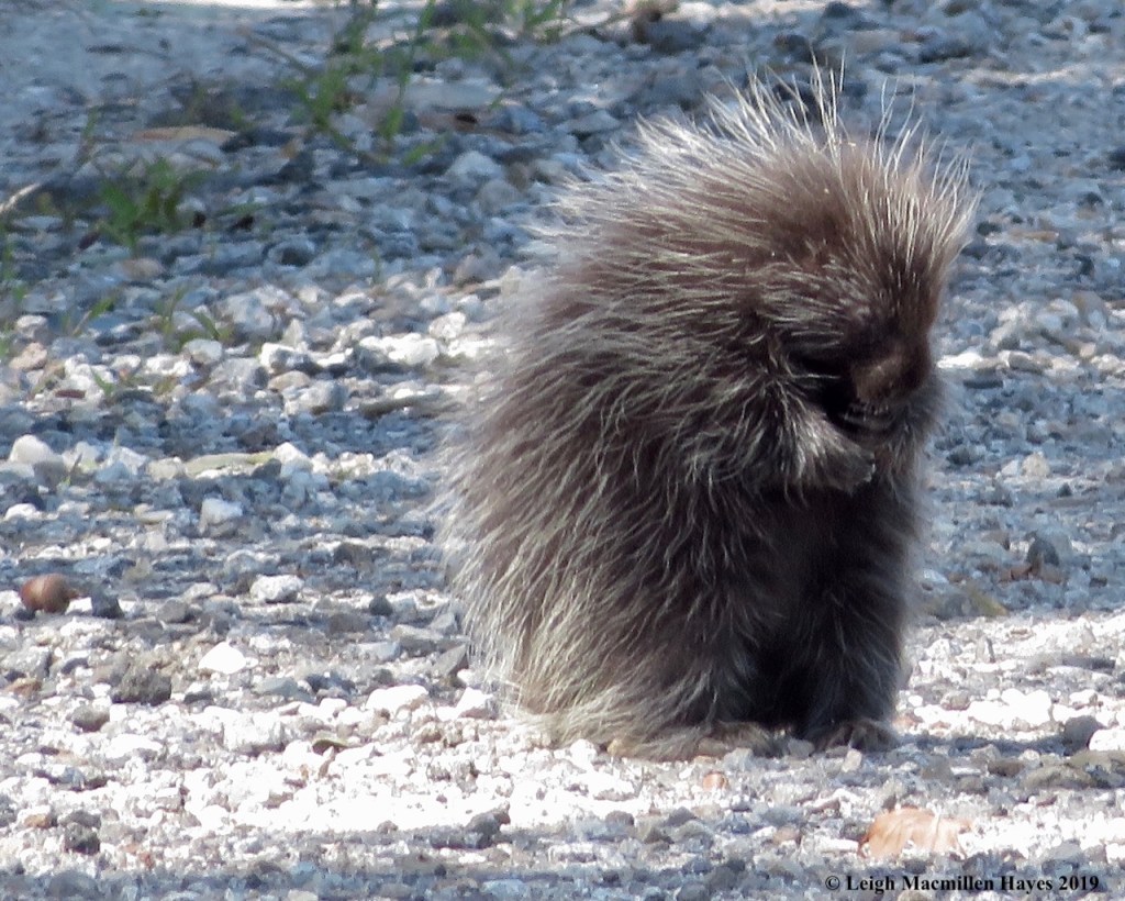 Yes, it was a young porcupine that I met upon a gravel driveway. And the pleasure was all mine. For a moment, however, I did wonder about its daytime foraging habit. Was there something wrong with this critter, e.g. rabies, for he and his parents are generally nocturnal? But, as I watched, I was reassured that it was just out enjoying a mid-afternoon snack.