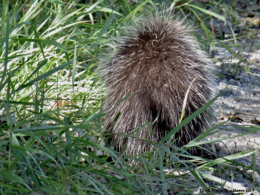 Every once in a while, this little guy turned his back on me. Had he been an adult, I would have seen the action as a defensive mode for they are known to spin around so that their tails face the predator during a confrontation. If attacked, an adult will use the tail to strike its assailant. And those quills—they detach easily and with their barbed ends become embedded in the skin of the attacker. But . . . it’s a misconception to think that a porcupine can eject or throw its quills.