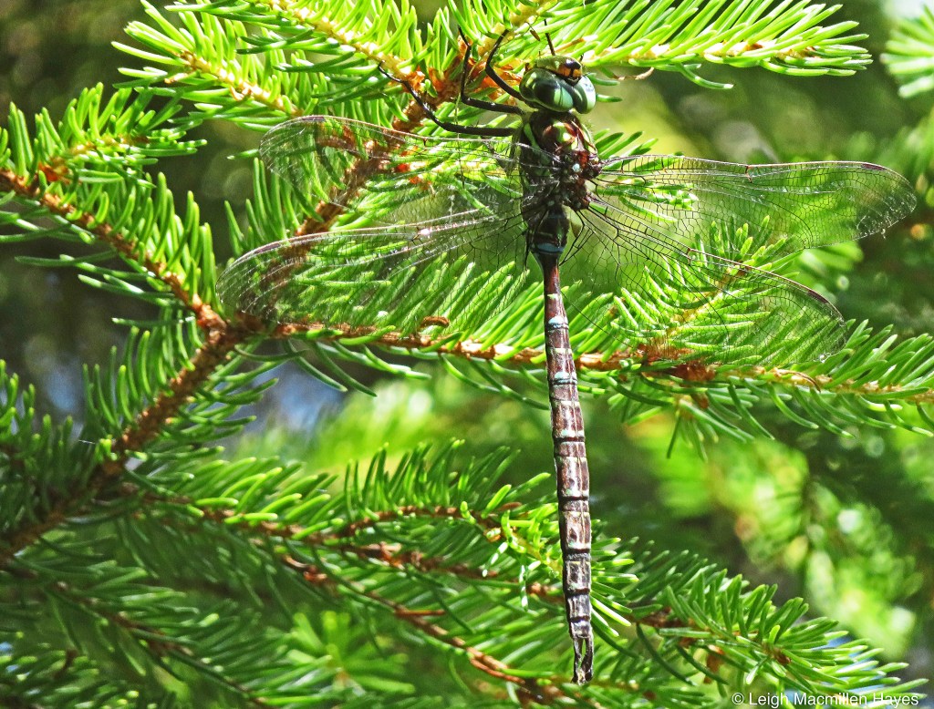 At long last, my guy spotted this guy dangling as the darner family does. You might also find one resting upon a tree trunk. The lighting wasn’t right for me to make a precise identification because I couldn’t see the markings on its face and thorax, but still . . . I got my dragonfly and was happy.