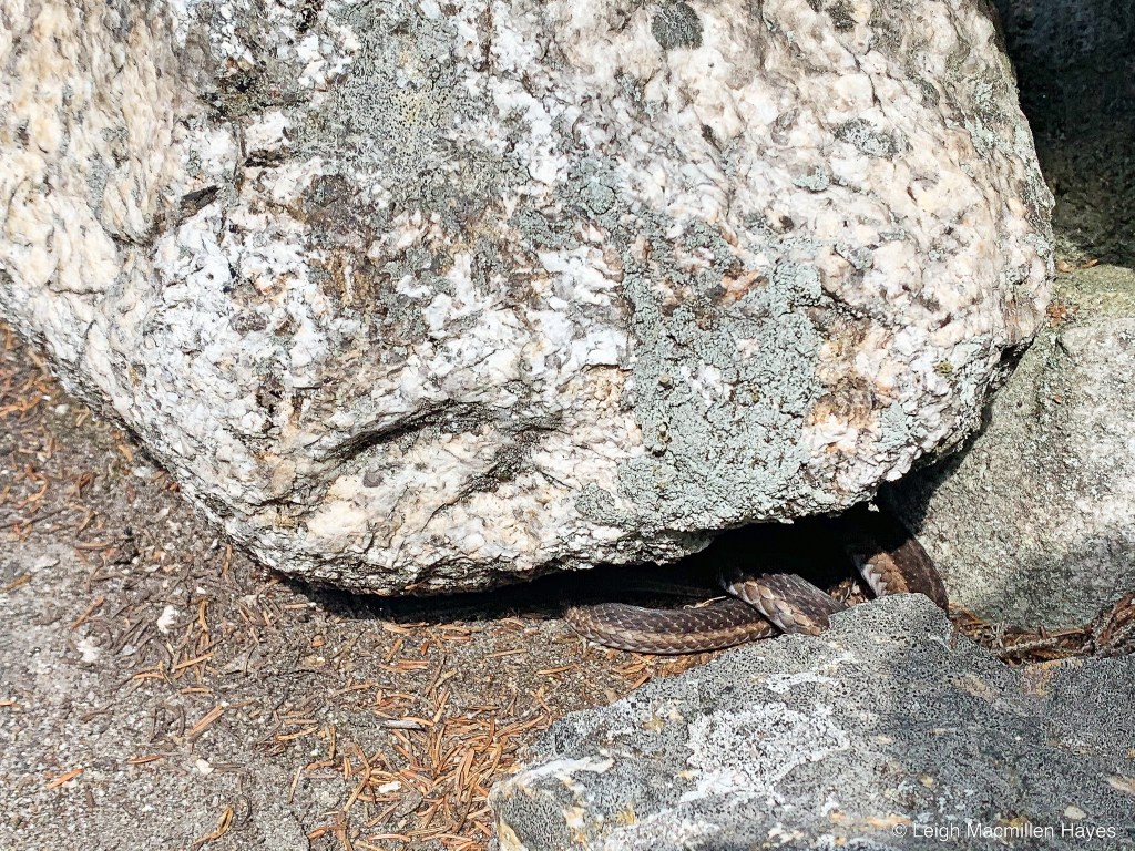 To follow the loop takes a lot longer than had we chosen to descend the way we’d climbed up; but eventually we were back on the main trail where we’d completely missed this sign-in rock. We chose not to sign in or out and tried our best to leave no trace.