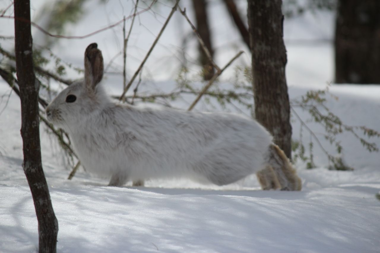 Following the orange connector trail down, we began to notice more mammal activity. We’d left the porcupines behind, but the snowshoe hare always seem to dine in one particular location.