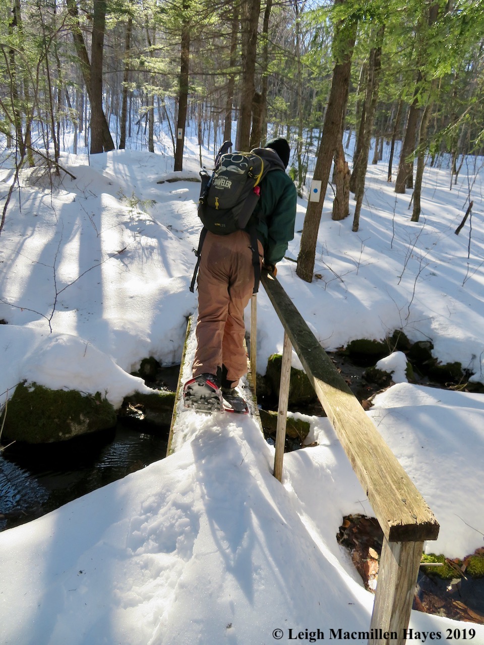 Though we’d spent several hours on the trail, it seemed we reached the final bridge crossing in no time and my guy performed a chivalrous act of stomping down the snow to make for an easy crossing.
