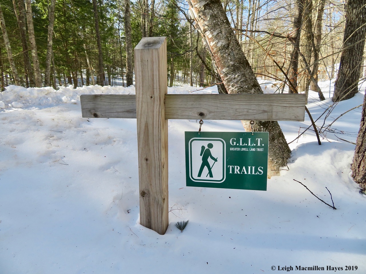 Midmorning found us driving down a lane in Stoneham, Maine, made extra narrow by high snowbanks. At the second entrance to the Greater Lovell Land Trust’s Five Kezars Reserve we were delighted to discover the driveway had been plowed just enough to allow a vehicle or two to park. And so we did.