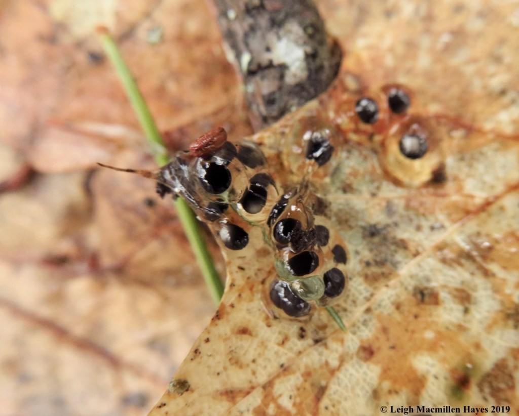 Another life form who uses the pool as a natal breeding spot is the spotted salamander and though I tend to mostly spy them on Big Night, I can tell by egg masses left behind that they have visited.