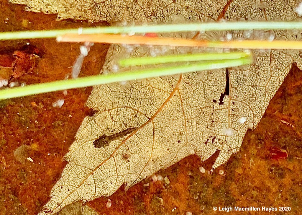 Their egg masses are a wee bit different from the Wood Frog masses, in that they have a gelatinous coating around the entire grouping, so they don’t look so tapioca-like. Mosquito larvae, tumblers at this stage, also wiggle about in the water.