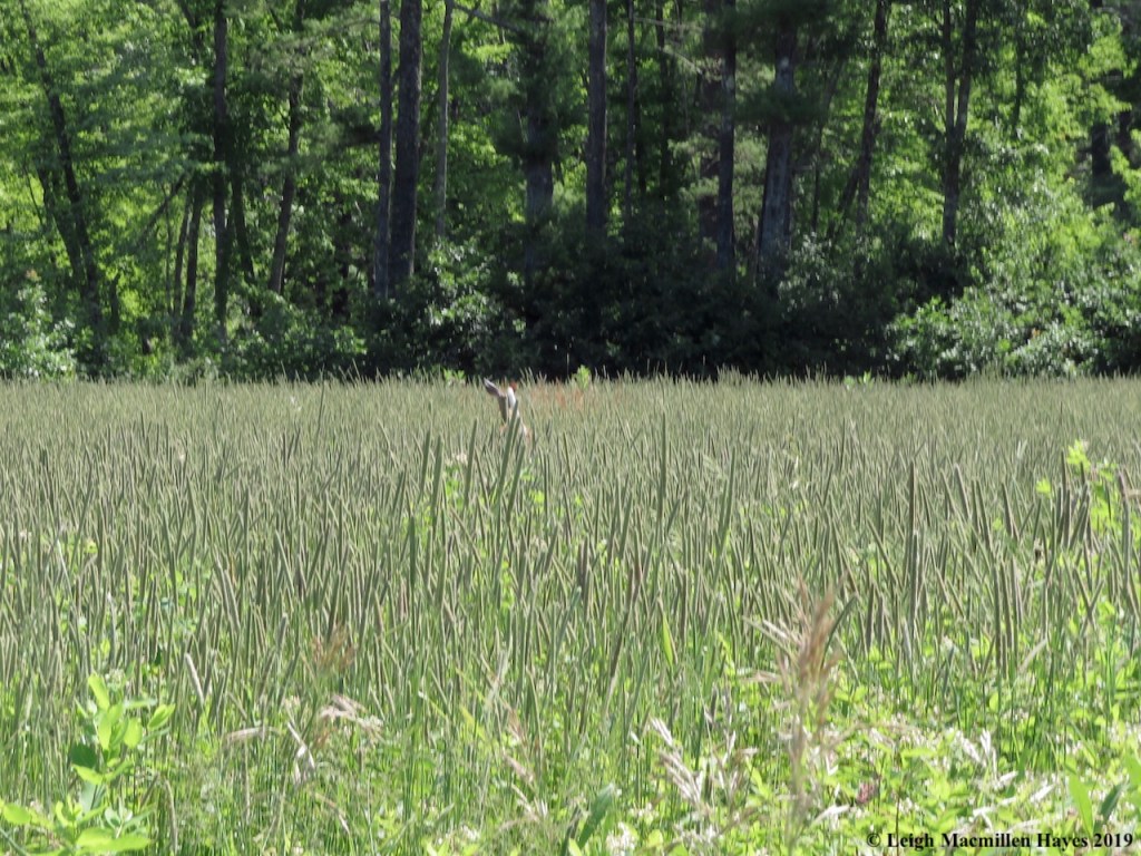 Looking back toward our house, with our neighbors’ woods to the left and ours to the right, it looks as though the Goldenrod goes on forever. Actually, there’s some Meadowsweet and a few Steeplebushes, and some other flowers in the mix, and ferns including Sensitive and Marsh and Royal and Interrupted, and mosses galore. But right now it’s the Goldenrod and Spirea (Meadowsweet and Steeplebush) that are attracting the pollinators.