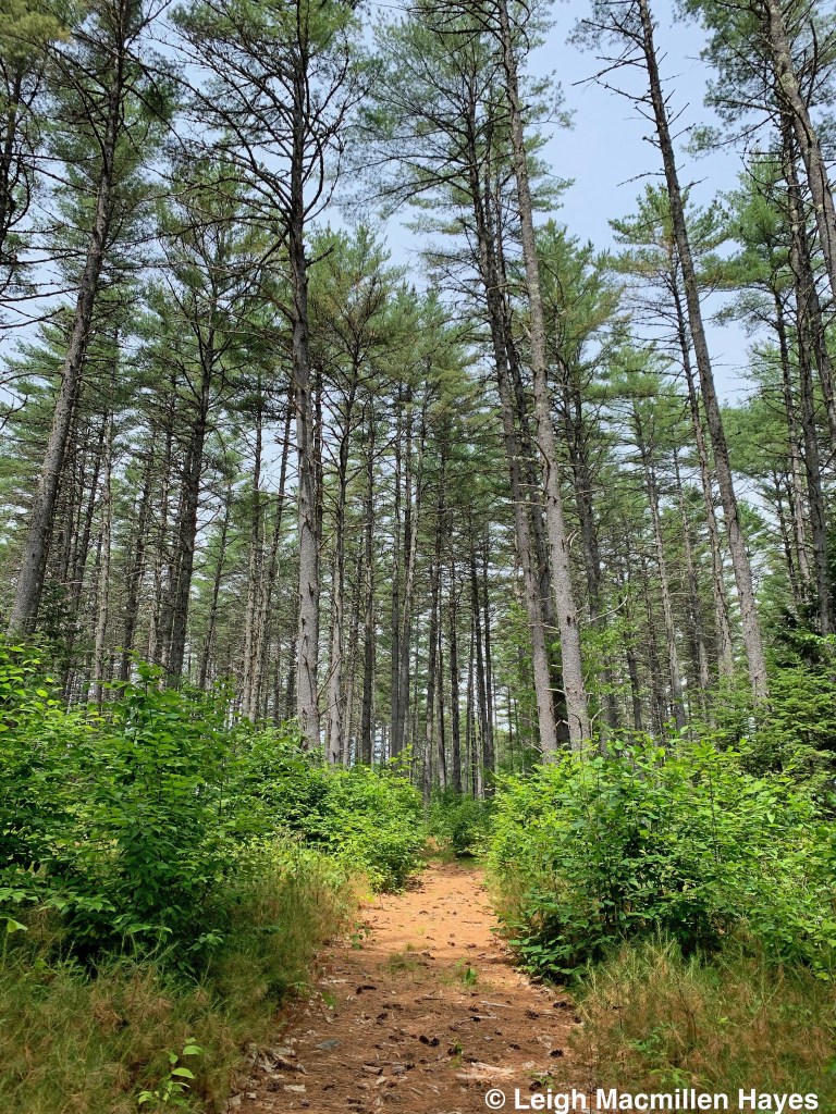 Camera relocated, I decided to circle around the trail I’d created in our woods years ago because in the shade of the Pines and Hemlocks, and with a breeze, it was rather pleasant despite the temp being about 97˚.