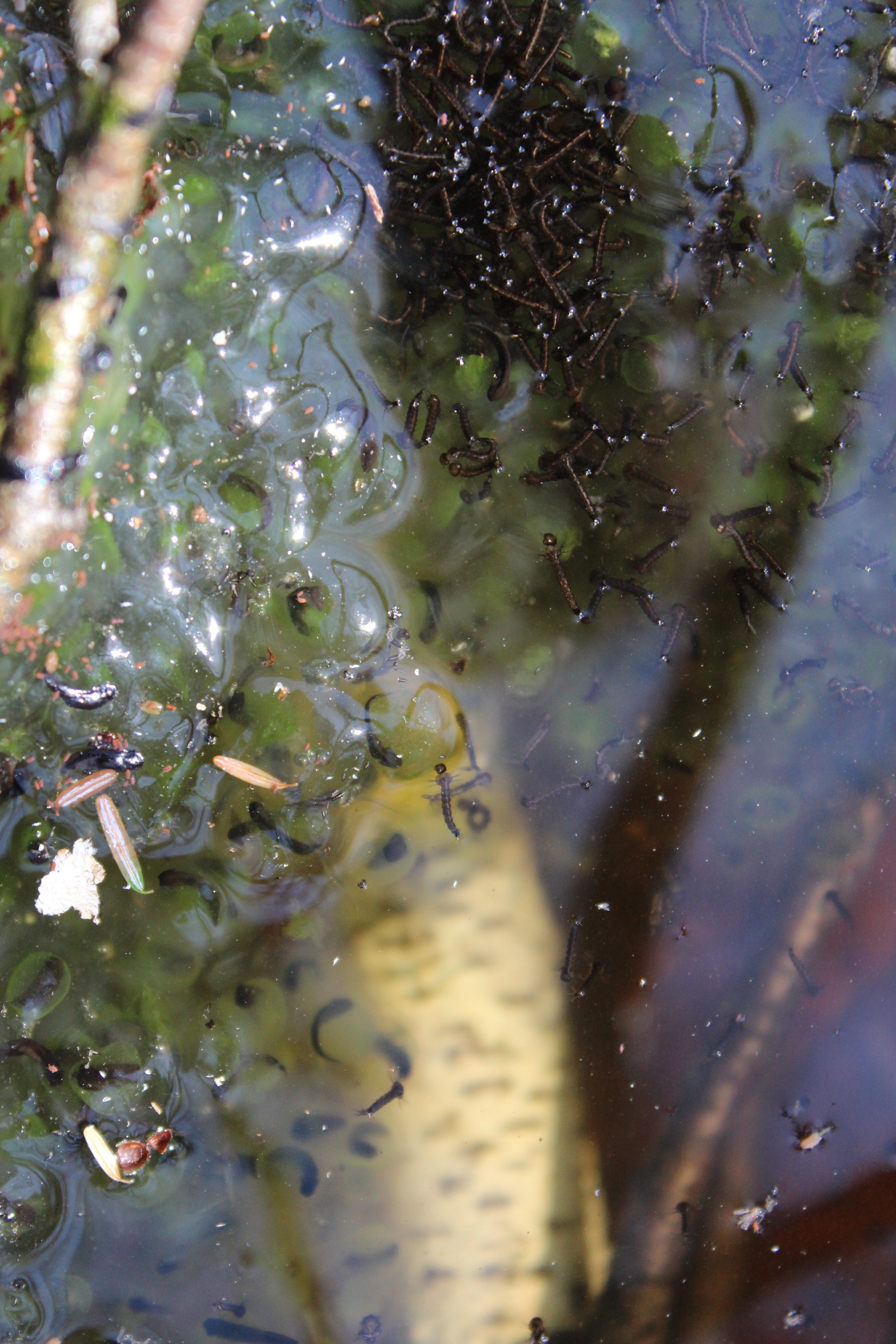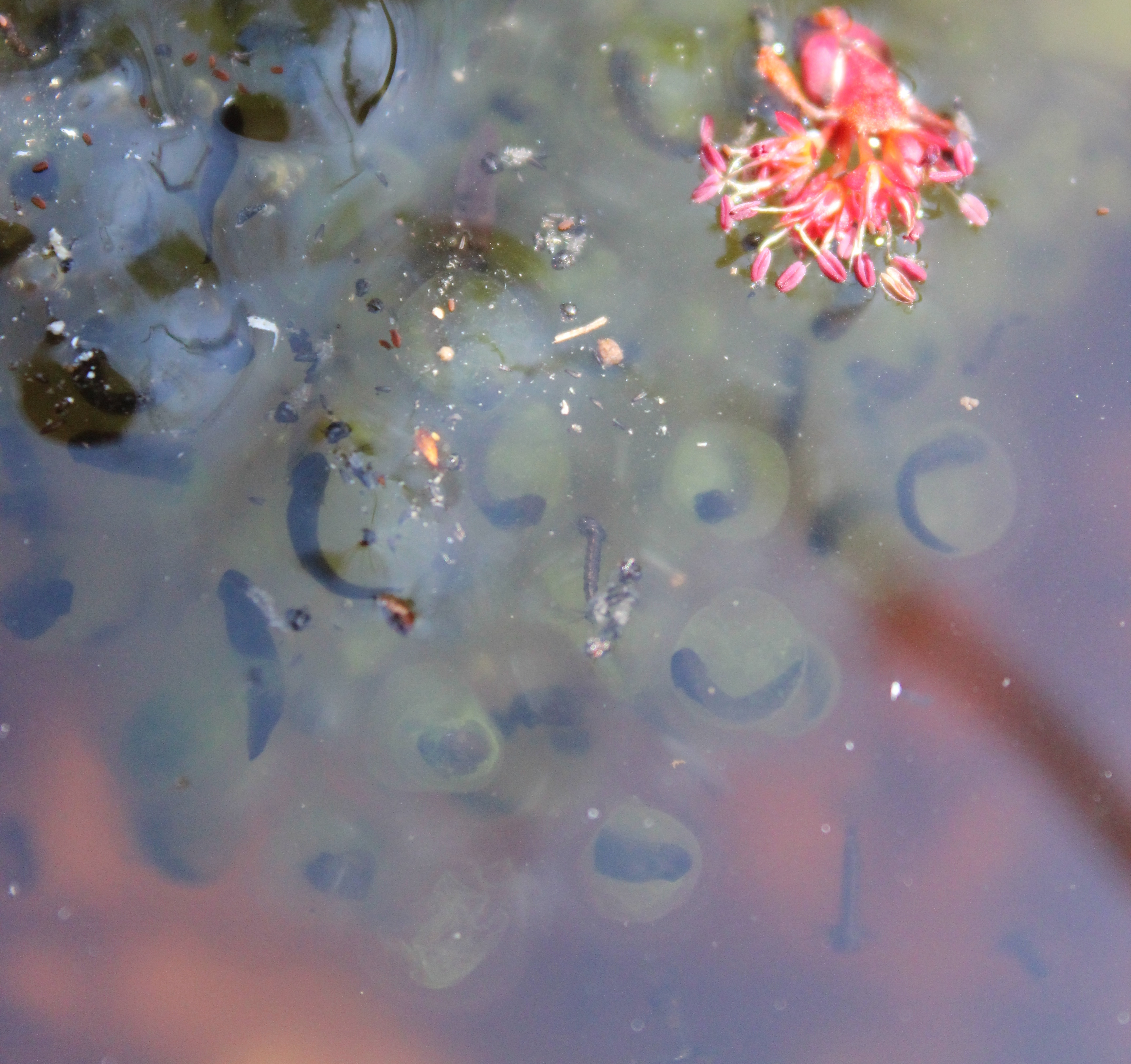 As I walked around the pool, the Mallards swam, and I realized that I’d forced them into the spot where the egg masses had been laid and I wondered how many they’d already eaten.
