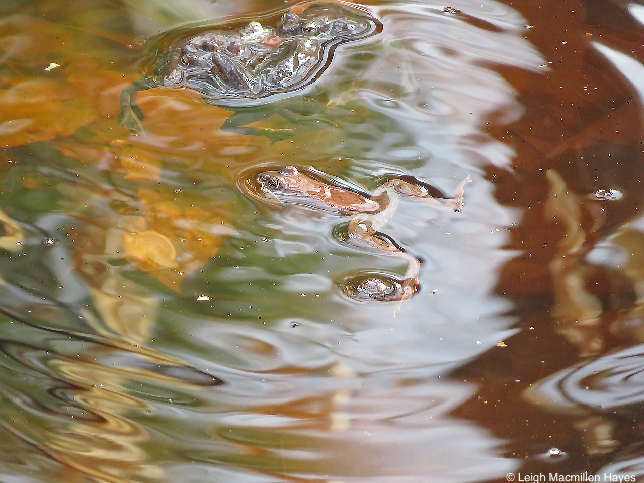 It’s the lucky male who has the best “Wruck, wruck,” that finds a mate. He clasps her with his forelegs and as she begins to deposit eggs, he fertilizes them externally.