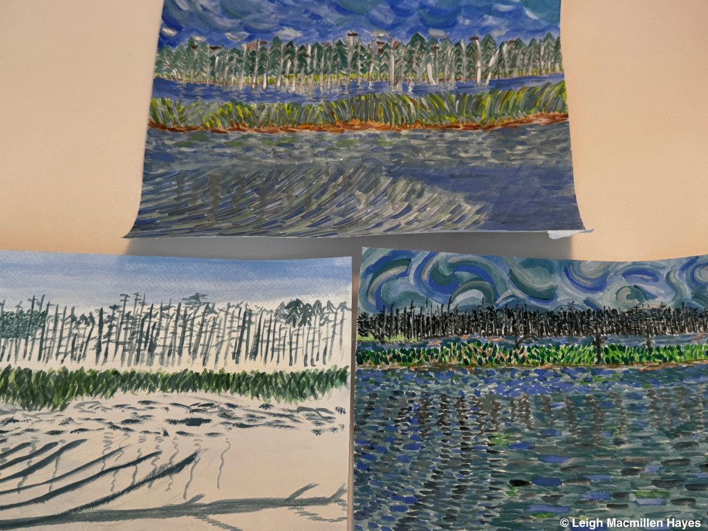 First watercolorHemlock Bridge Road watercolorsHemlock Bridge Road watercolor pencilswatercolor pencilswatercolorswatercolorswatercolorsAlbany Mountain on a rainy day, watercolorsPollinator garden, watercolorsHolt Pond quaking bog, watercolorsSummit of Puzzle Mountain, acrylicsapproaching Boulder, Colorado, acrylicsFrenchman’s Hole, Newry, acrylicsCarsley Brook, Highland Research Forest, acrylicsView of Shell Pond and White Mountains from Blueberry Mountain, Stow, Maine, watercolorPink Lady’s Slippers, watercolorSunrise, Lubec, Maine, acrylicsFour-spotted Skimmer Dragonfly, watercolorGolden, Colorado, watercolorSummit of Pleasant Mountain, Maine, watercolor (gifted to Pat for his 30th birthday)Hemlock Bridge from Old Course, Saco River, Fryeburg, Maine, first gouache paintingHammonasset State Park from Harbor View, Clinton, Connecticut, gouacheCedar Island from Harbor View, Clinton, Connecticut, gouacheFall Reflection, gouacheWinter along Heald Pond Road, Lovell, Maine, gouacheChristmas in July, gouacheSunlit portion of spider web on Hamlock Covered Bridge, gouacheGreat Blue Heron, gouacheHemlock Covered Bridge, interior, gouacheBob Dunning Memorial Bridge, Pondicherry Park, gouacheBob Dunning Bridge, SNOW! gouacheBeaver at Albany Mtn beaver pond, gouacheDenning Black Bear, gouacheField beyond our yard, gouachePainted Turtle, literally! GouacheMy attempts to emulate Van Gogh; heron rookery in gouacheBandit the porcupine, gouacheMoose in beaver pond, gouache